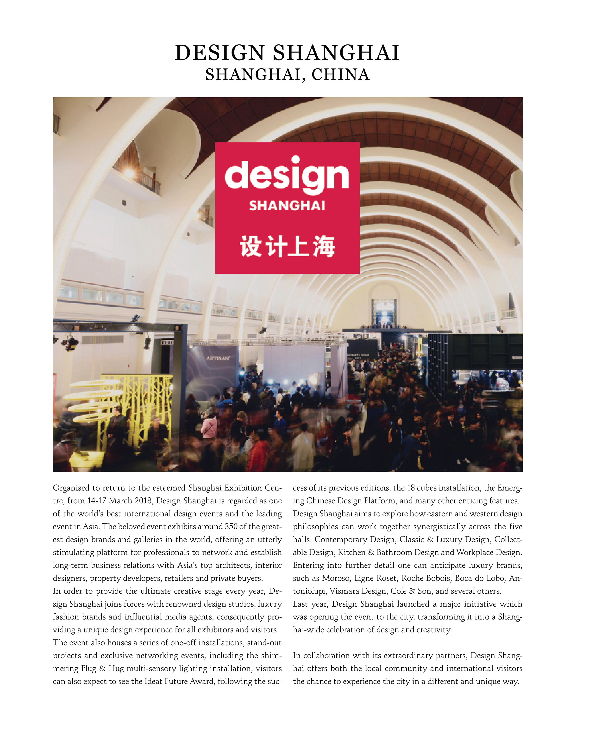 tre, from 14-17 March 2018, Design Shanghai is regarded as one