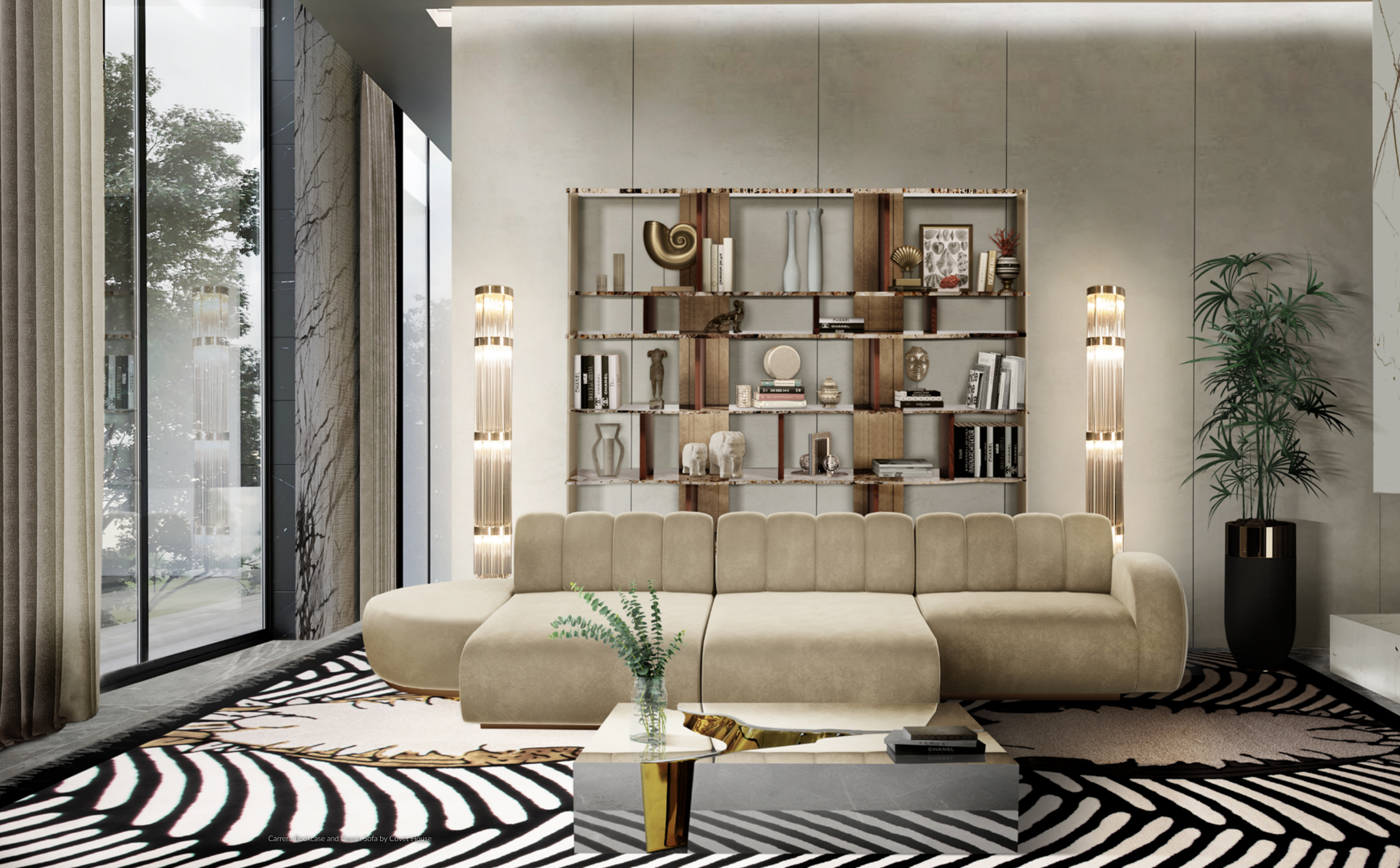 Carrera Bookcase and Cassia Sofa by Covet House