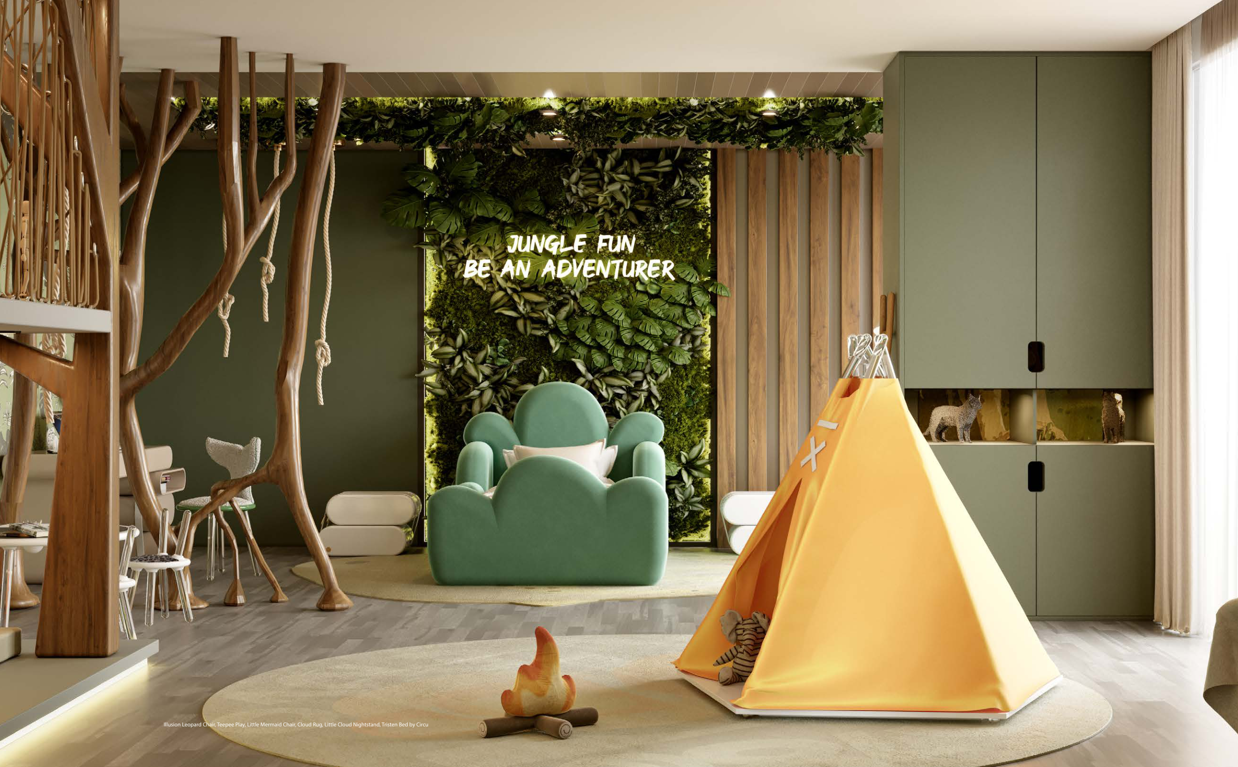 Illusion Leopard Chair, Teepee Play, Little Mermaid Chair, Cloud Rug, Little Cloud Nightstand, Tristen Bed by Circu