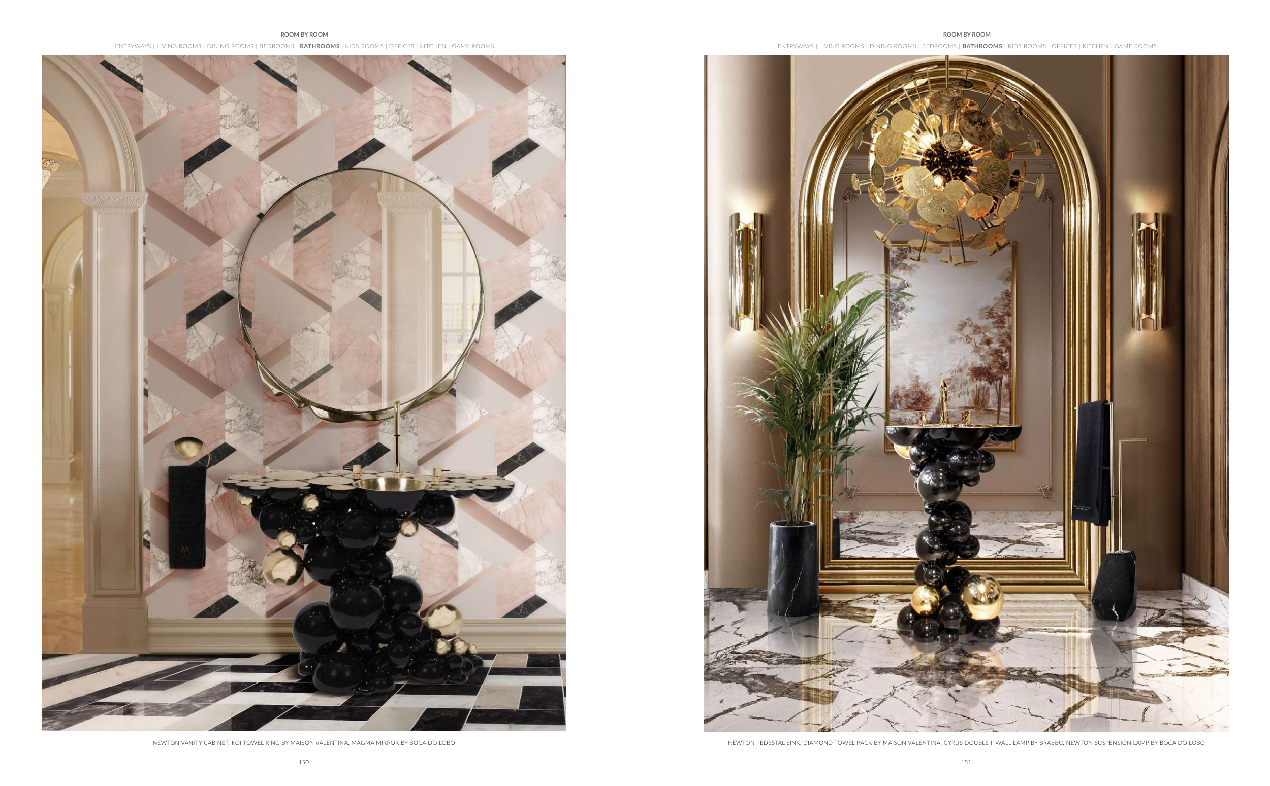 NEWTON VANITY CABINET, KOI TOWEL RING BY MAISON VALENTINA, MAGMA MIRROR BY BOCA DO LOBO