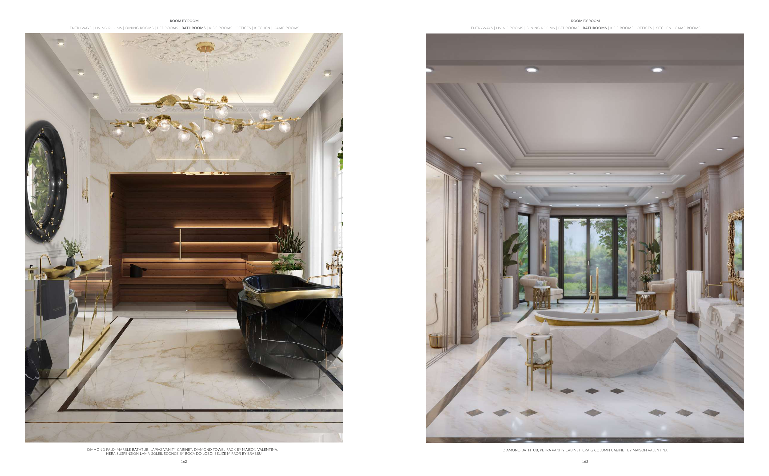 DIAMOND BATHTUB, PETRA VANITY CABINET, CRAIG COLUMN CABINET BY MAISON VALENTINA