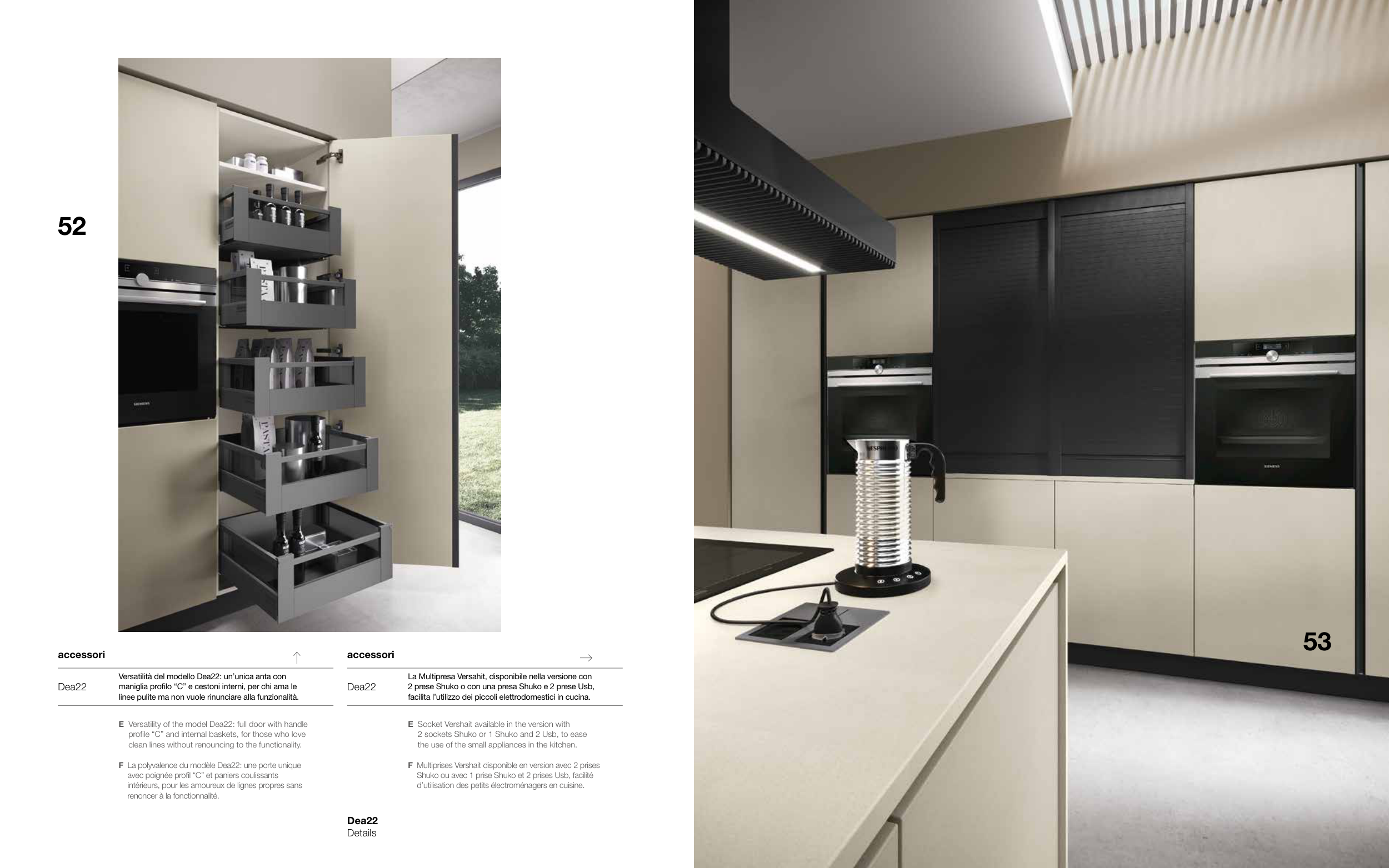 E Versatility of the model Dea22: full door with handle