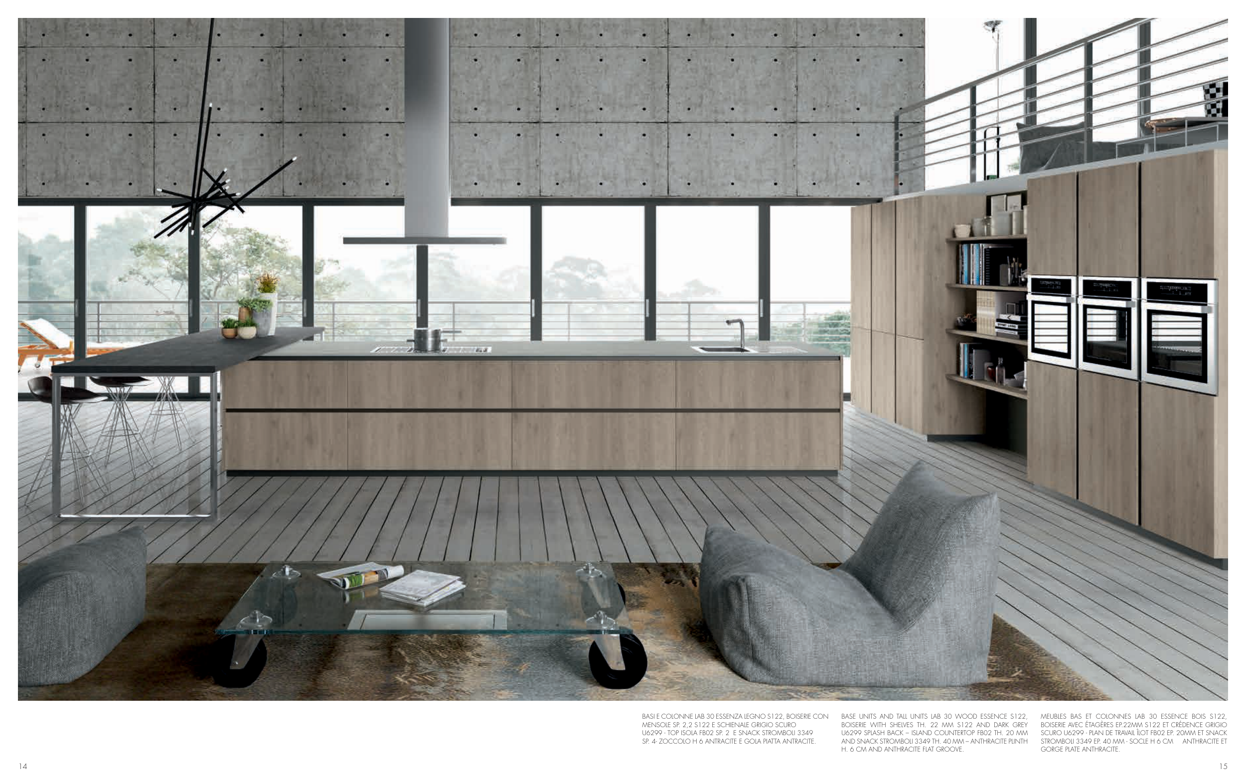 BOISERIE AVEC ÉTAGÈRES EP.22MM S122 ET CRÉDENCE GRIGIO