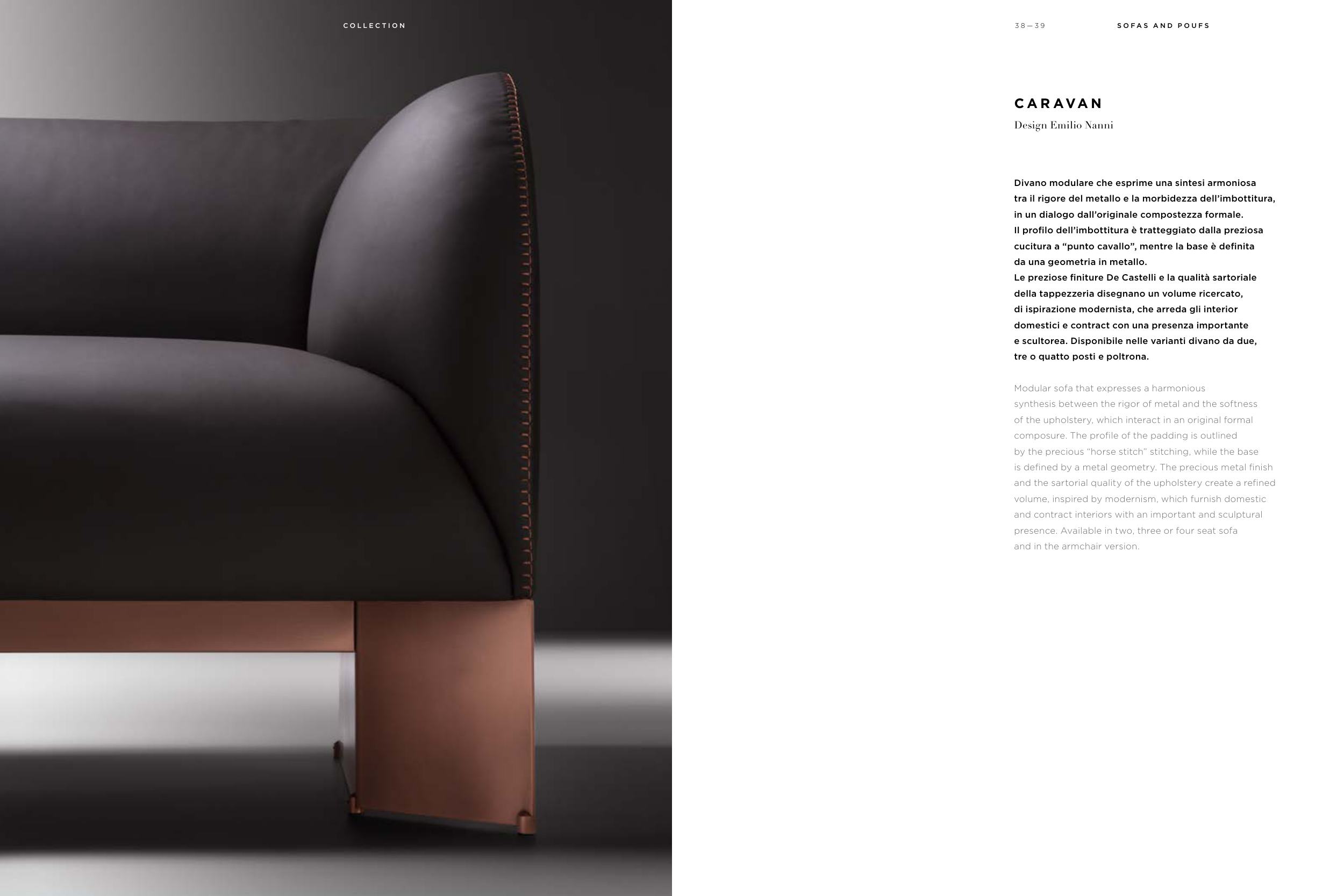 e scultorea. Disponibile nelle varianti divano da due,