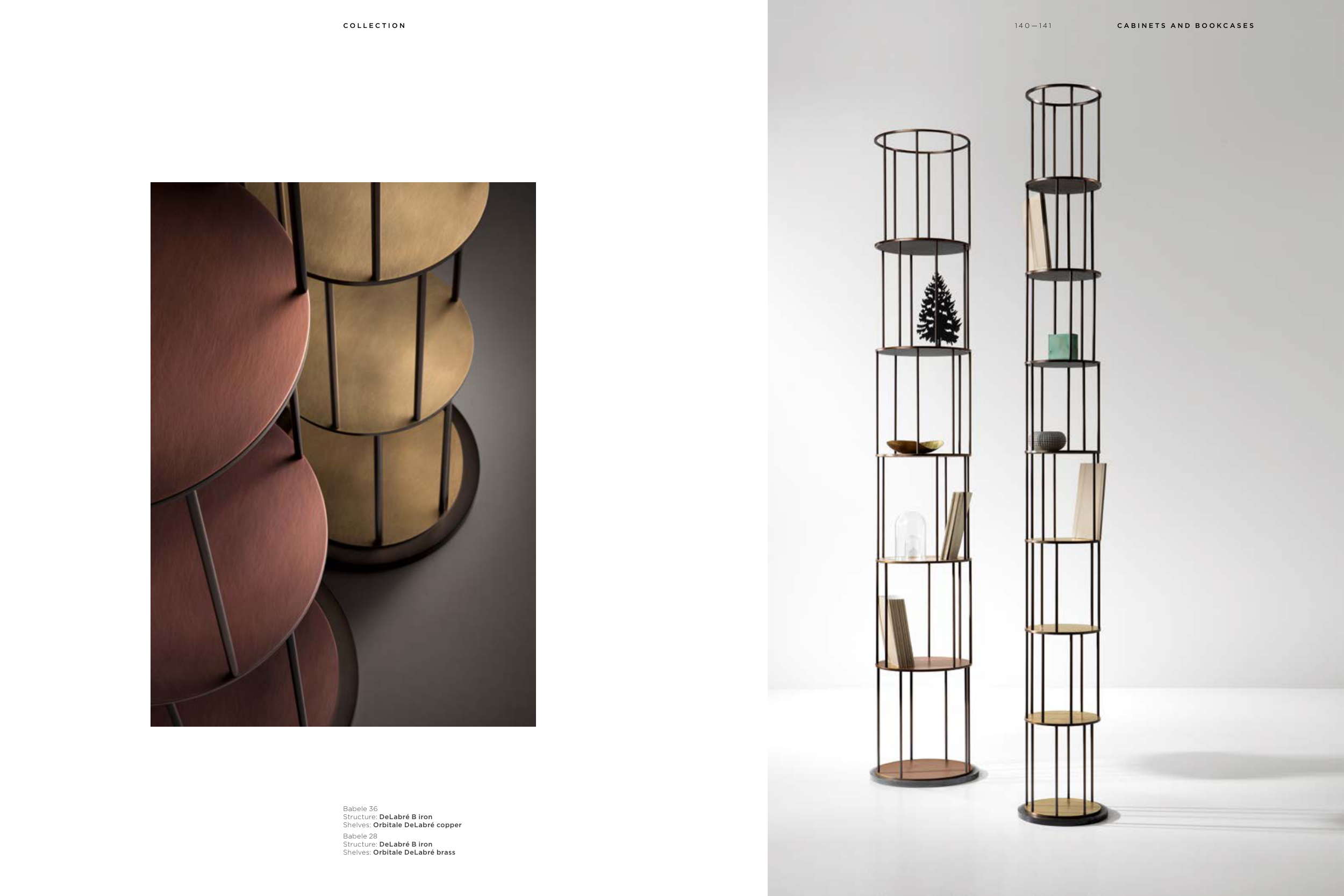 Babele 36 Structure: DeLabré B iron Shelves: Orbitale DeLabré copper Babele 28 Structure: DeLabré B iron Shelves: Orbitale DeLabré brass C O L L E C T I O N 1 4 0 — 1 4 1 C A B I N E T S A N D B O O K C A S E S