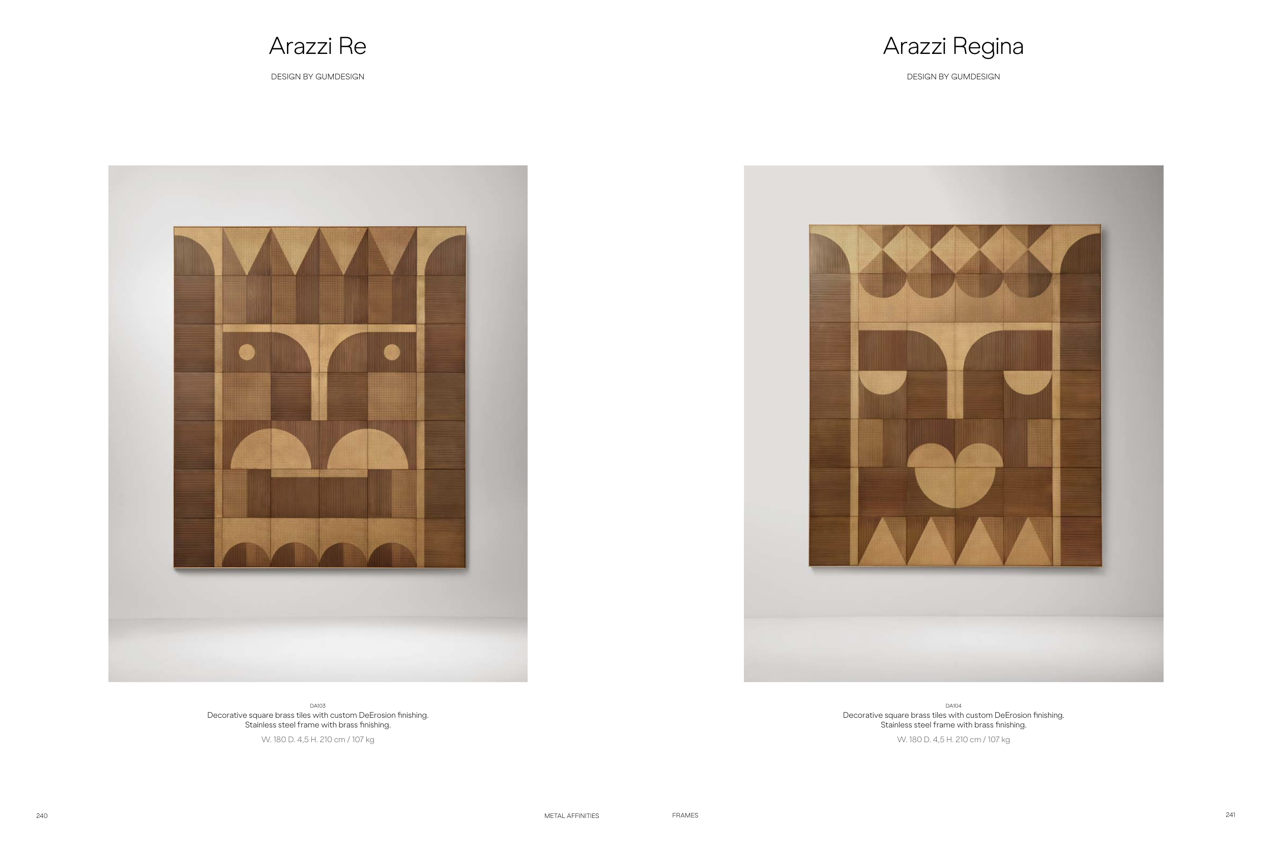 Decorative square brass tiles with custom DeErosion finishing.
