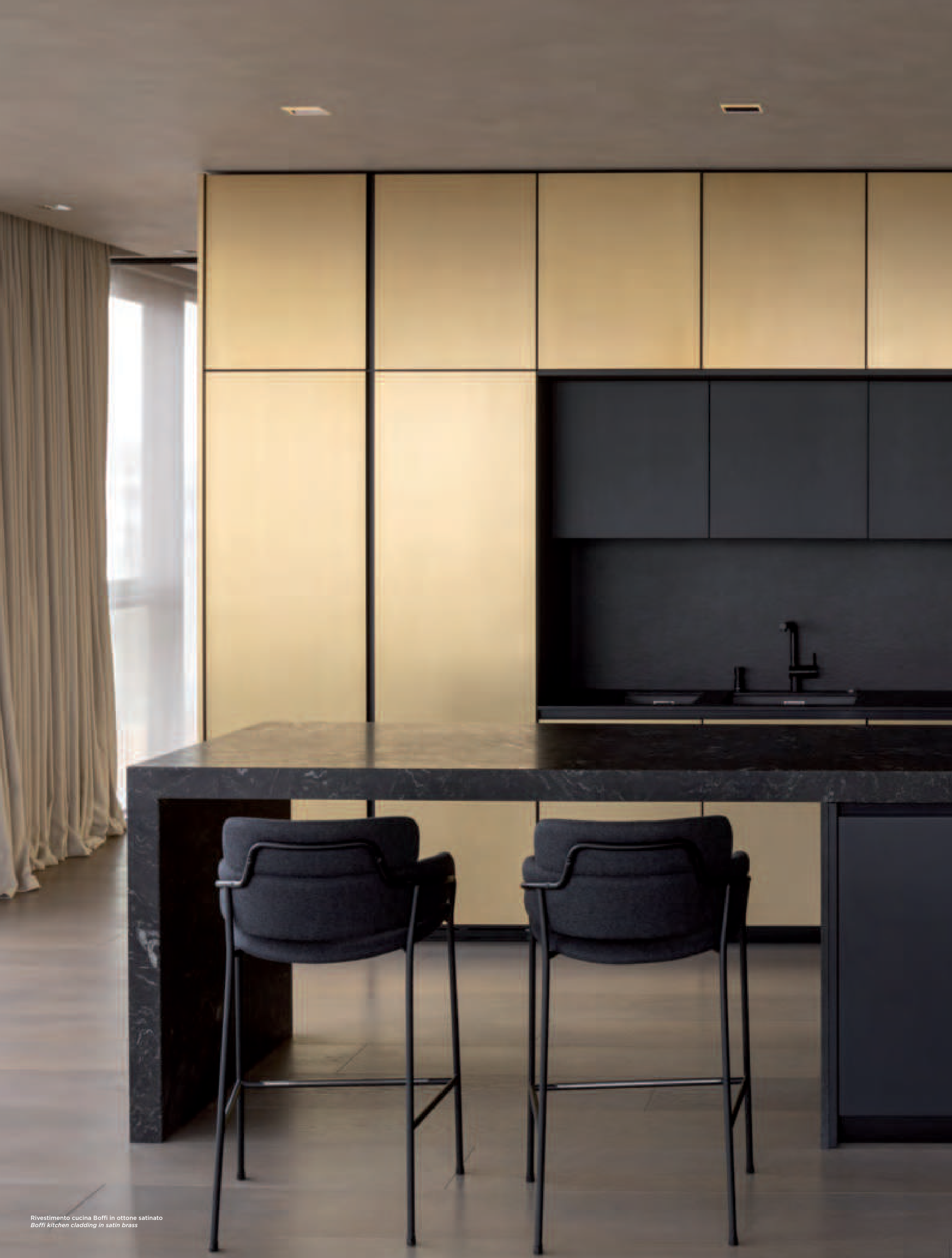 Boffi kitchen cladding in satin brass