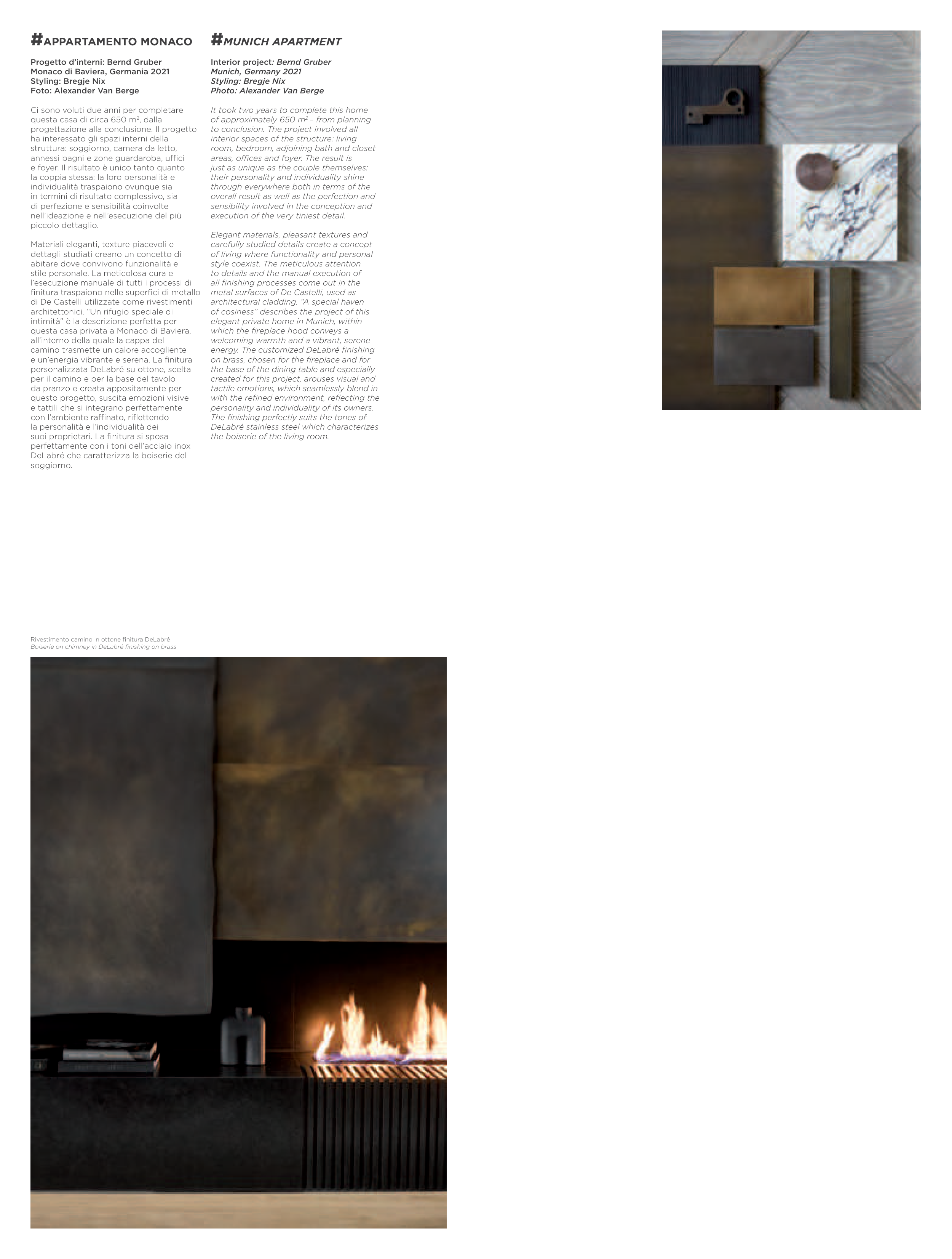 Rivestimento camino in ottone finitura DeLabré