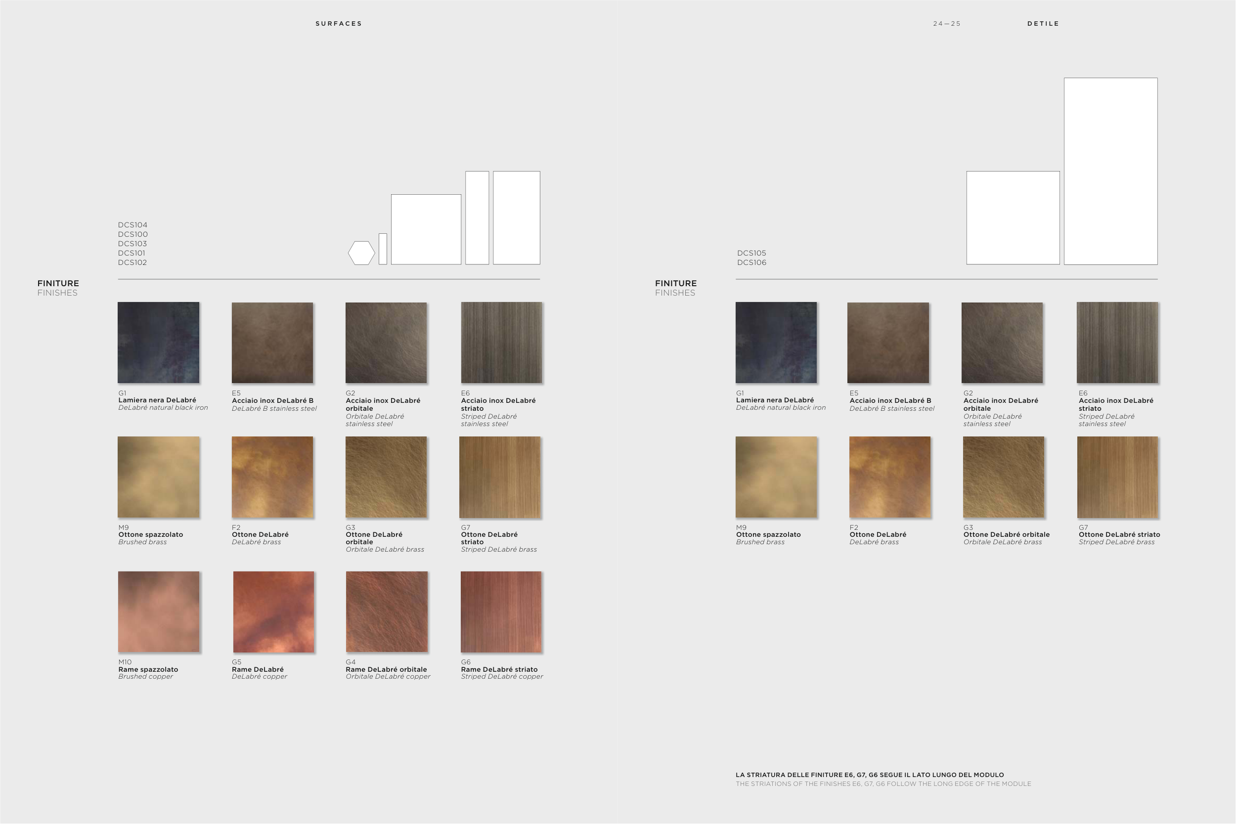 THE STRIATIONS OF THE FINISHES E6, G7, G6 FOLLOW THE LONG EDGE OF THE MODULE