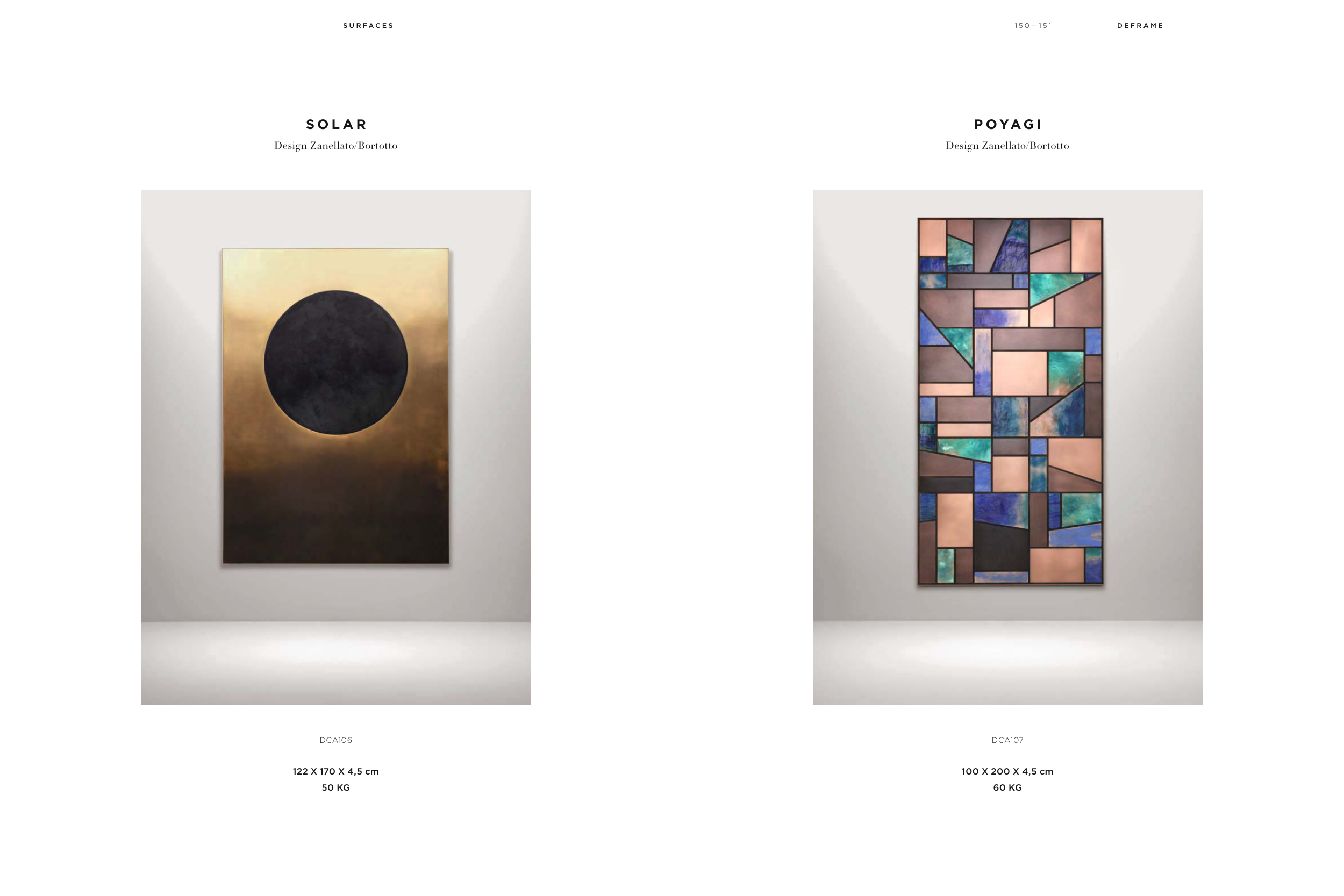 DCA106 122 X 170 X 4,5 cm 50 KG S U R F A C E S S O L A R Design Zanellato/Bortotto DCA107 100 X 200 X 4,5 cm 60 KG 1 5 0 — 1 5 1 D E F R A M E P OYA G I Design Zanellato/Bortotto