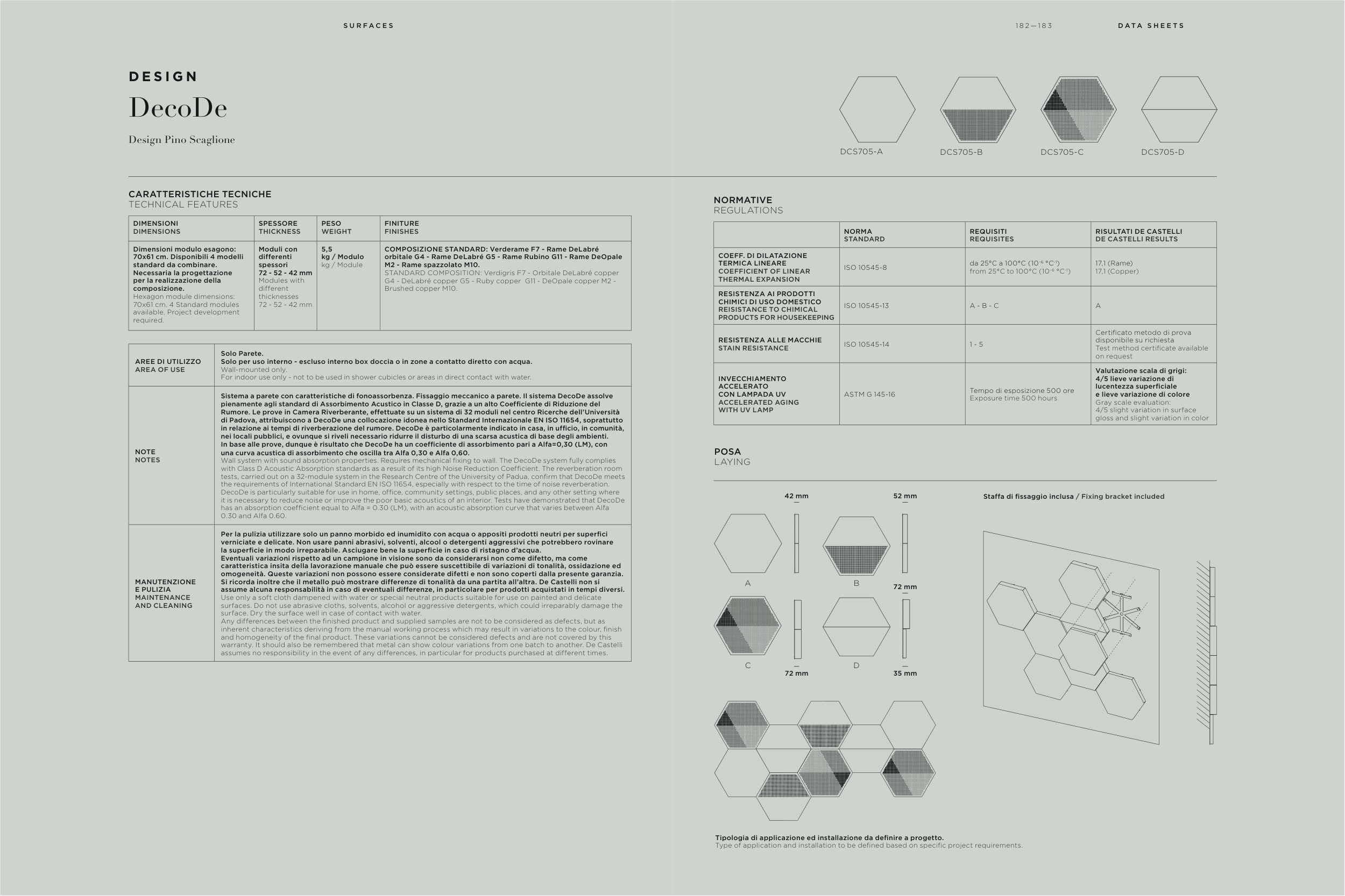 di Padova, attribuiscono a DecoDe una collocazione idonea nello Standard Internazionale EN ISO 11654, soprattutto