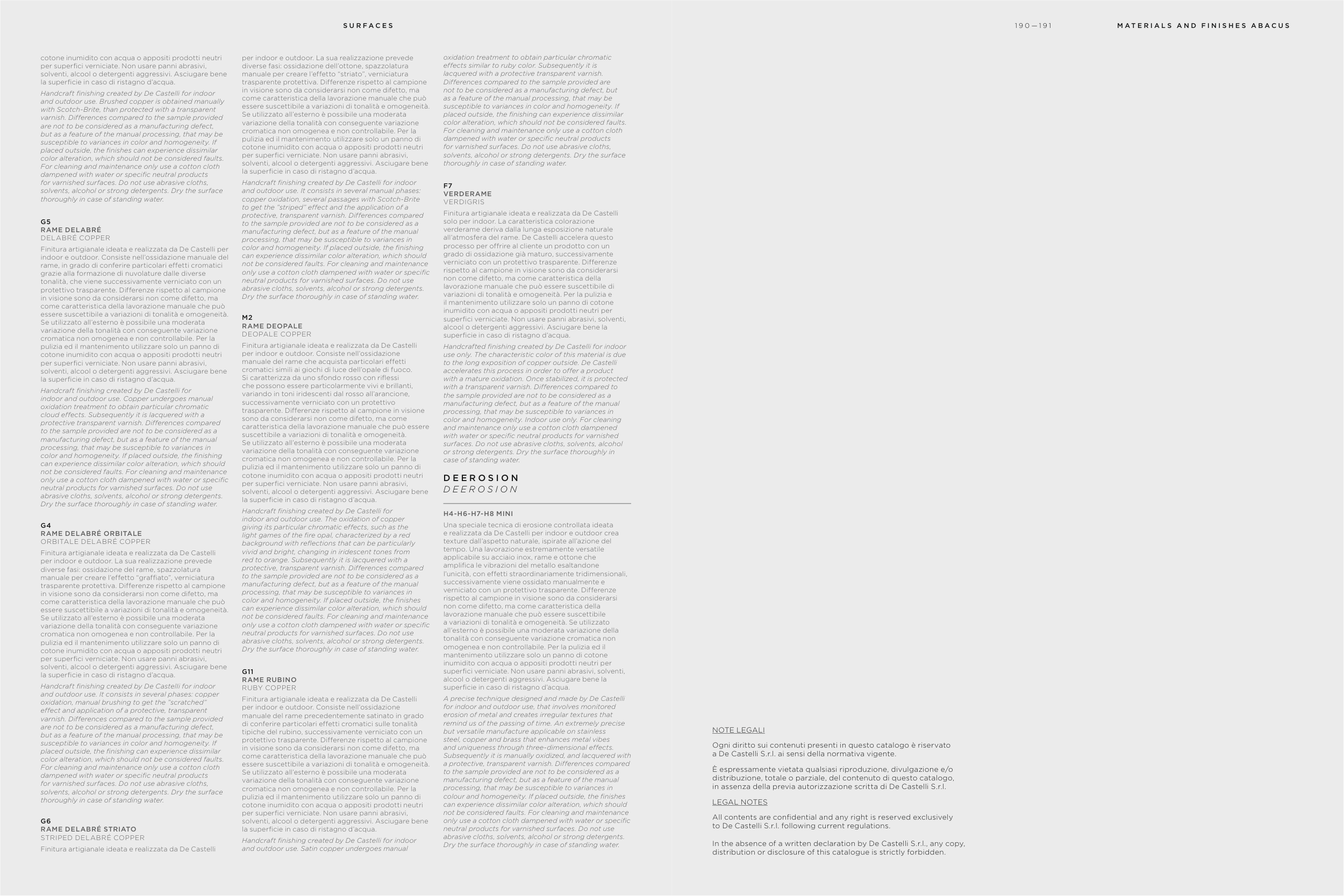 to De Castelli S.r.l. following current regulations.