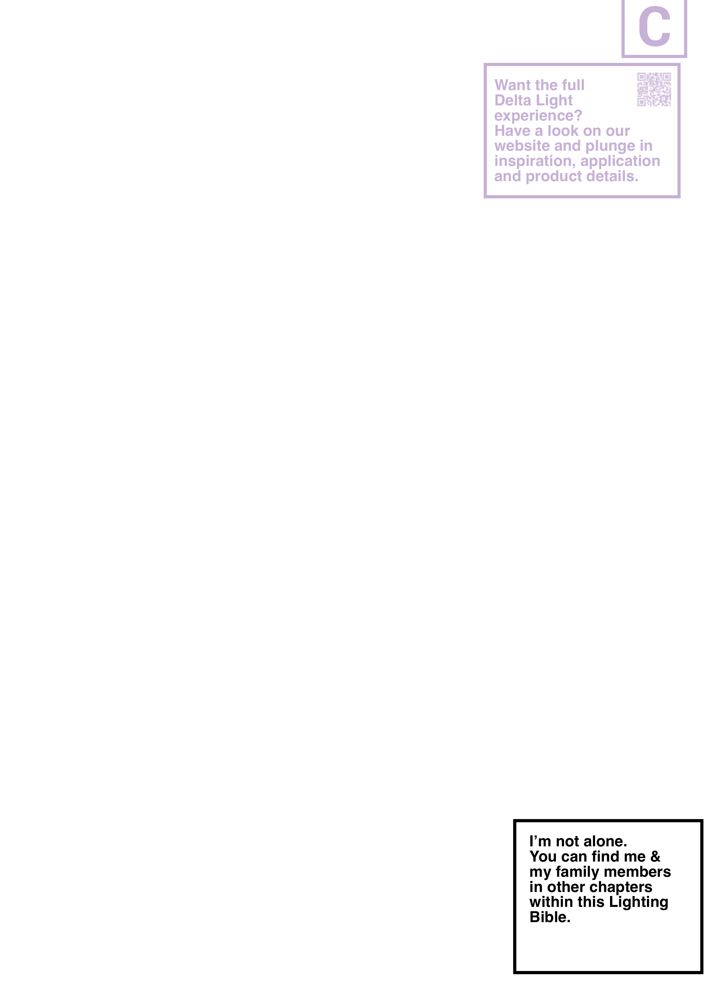 C I’m not alone. You can find me & my family members in other chapters within this Lighting Bible. Want the full Delta Light experience? Have a look on our website and plunge in inspiration, application and product details.