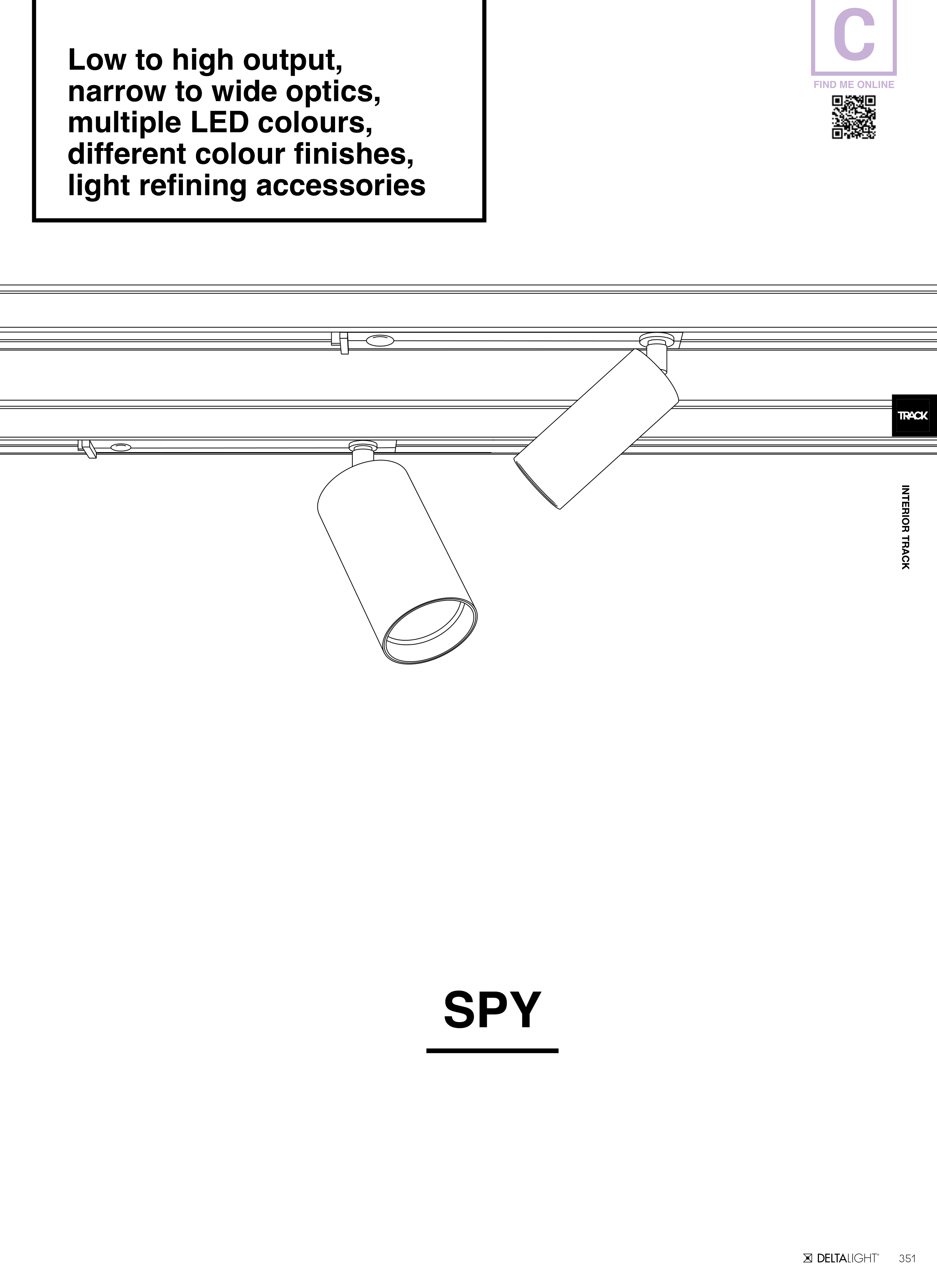 351 INTERIOR TRACK FIND ME ONLINE C SPY Low to high output, narrow to wide optics, multiple LED colours, different colour finishes, light refining accessories