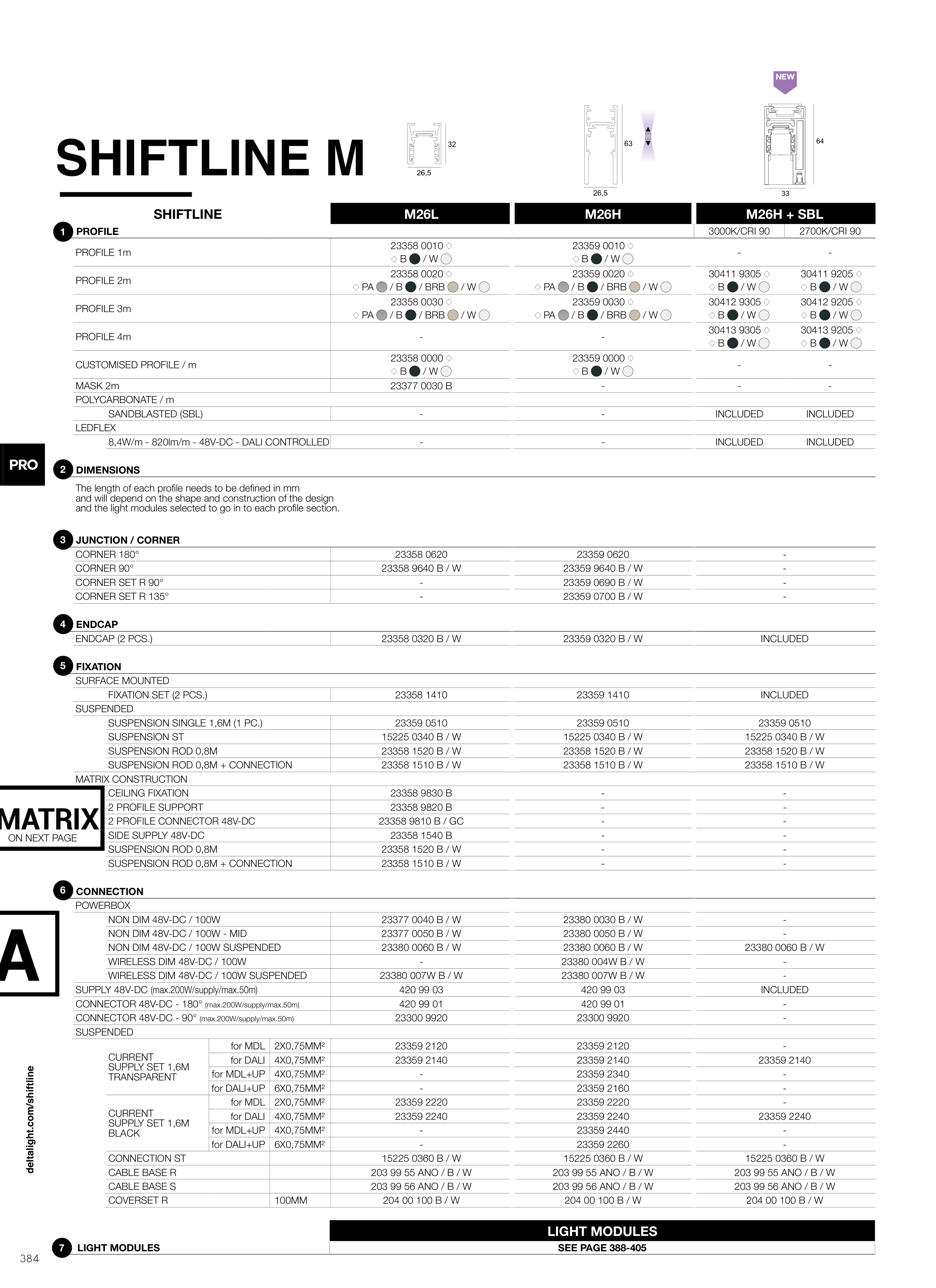 and the light modules selected to go in to each profile section.