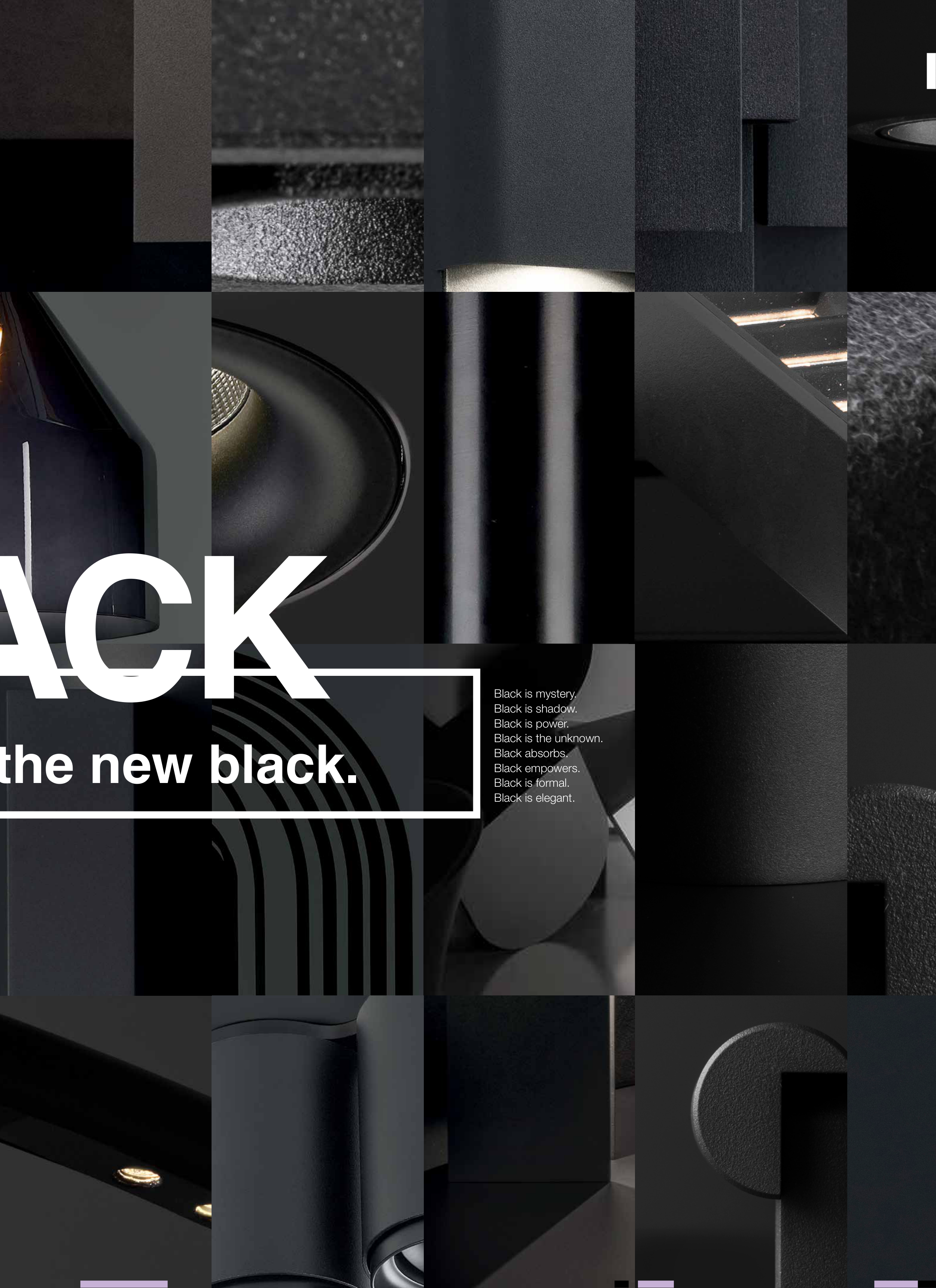 17 BLACK is the new black. Black is mystery. Black is shadow. Black is power. Black is the unknown. Black absorbs. Black empowers. Black is formal. Black is elegant.