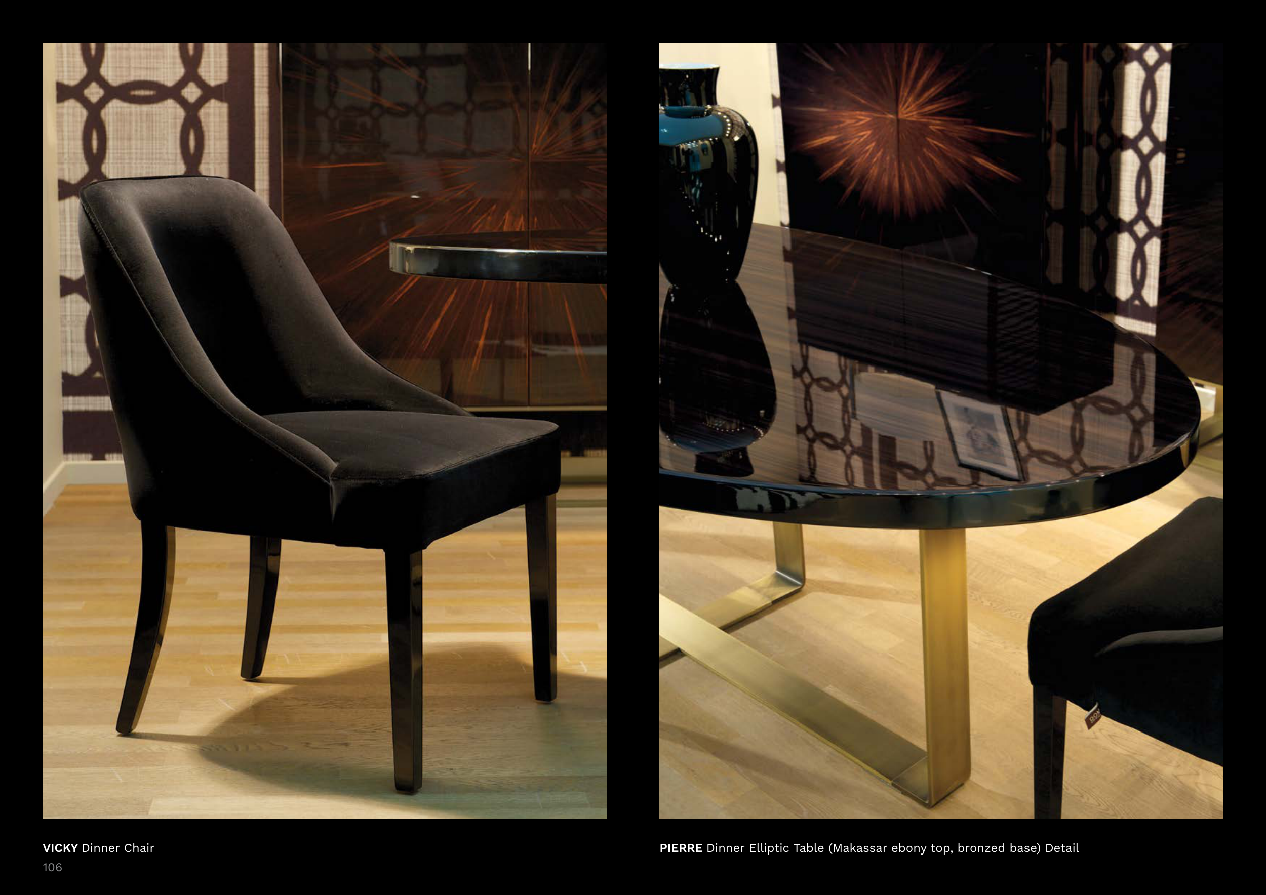 PIERRE Dinner Elliptic Table (Makassar ebony top, bronzed base) Detail