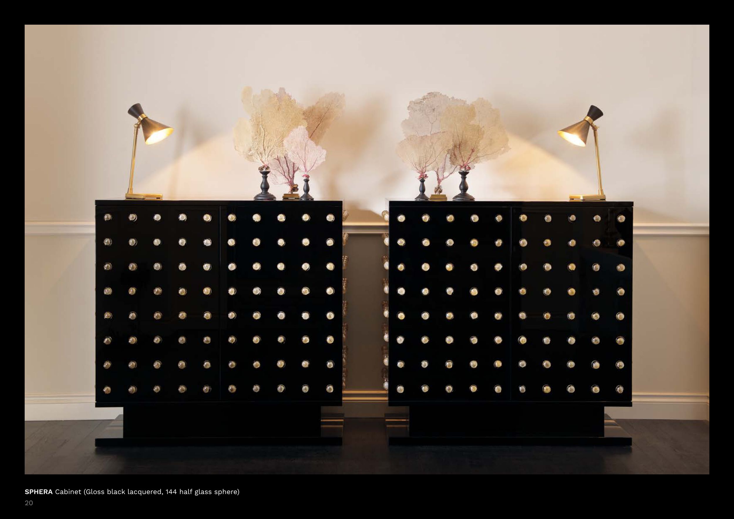 SPHERA Cabinet (Gloss black lacquered, 144 half glass sphere)