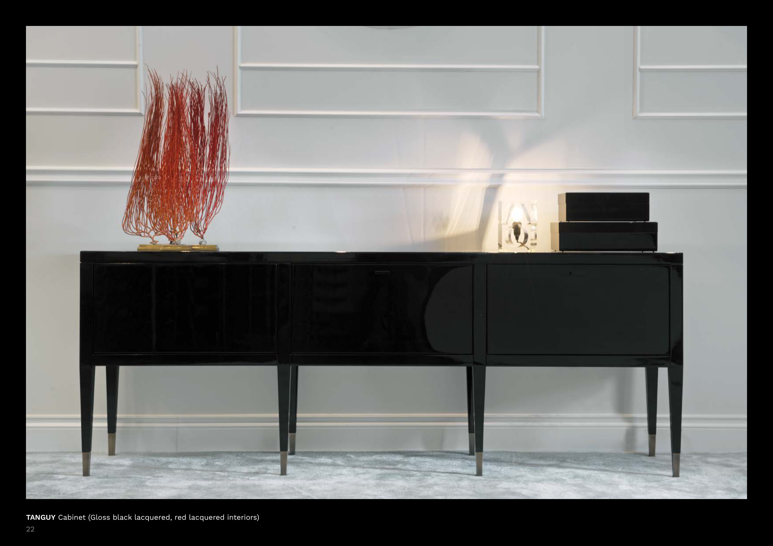 TANGUY Cabinet (Gloss black lacquered, red lacquered interiors)