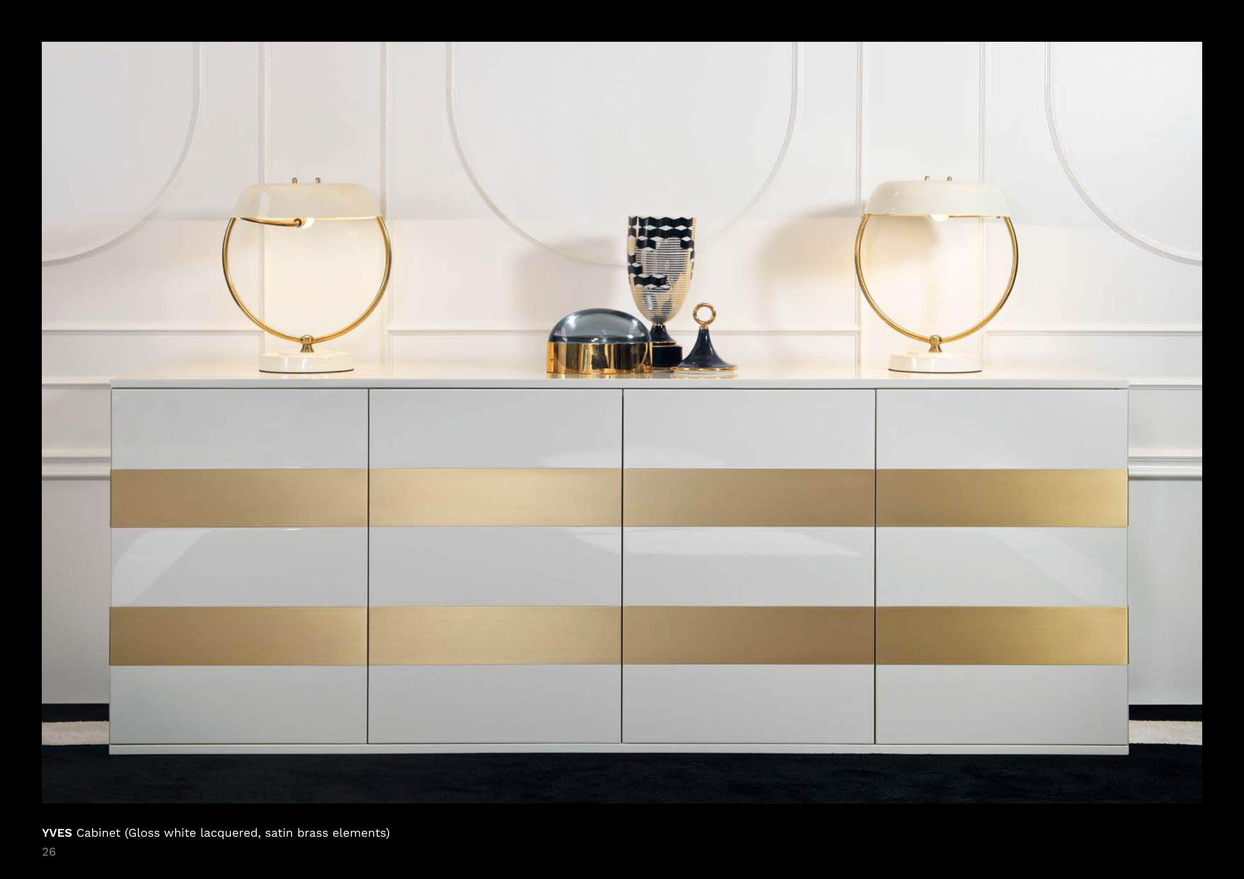 YVES Cabinet (Gloss white lacquered, satin brass elements)