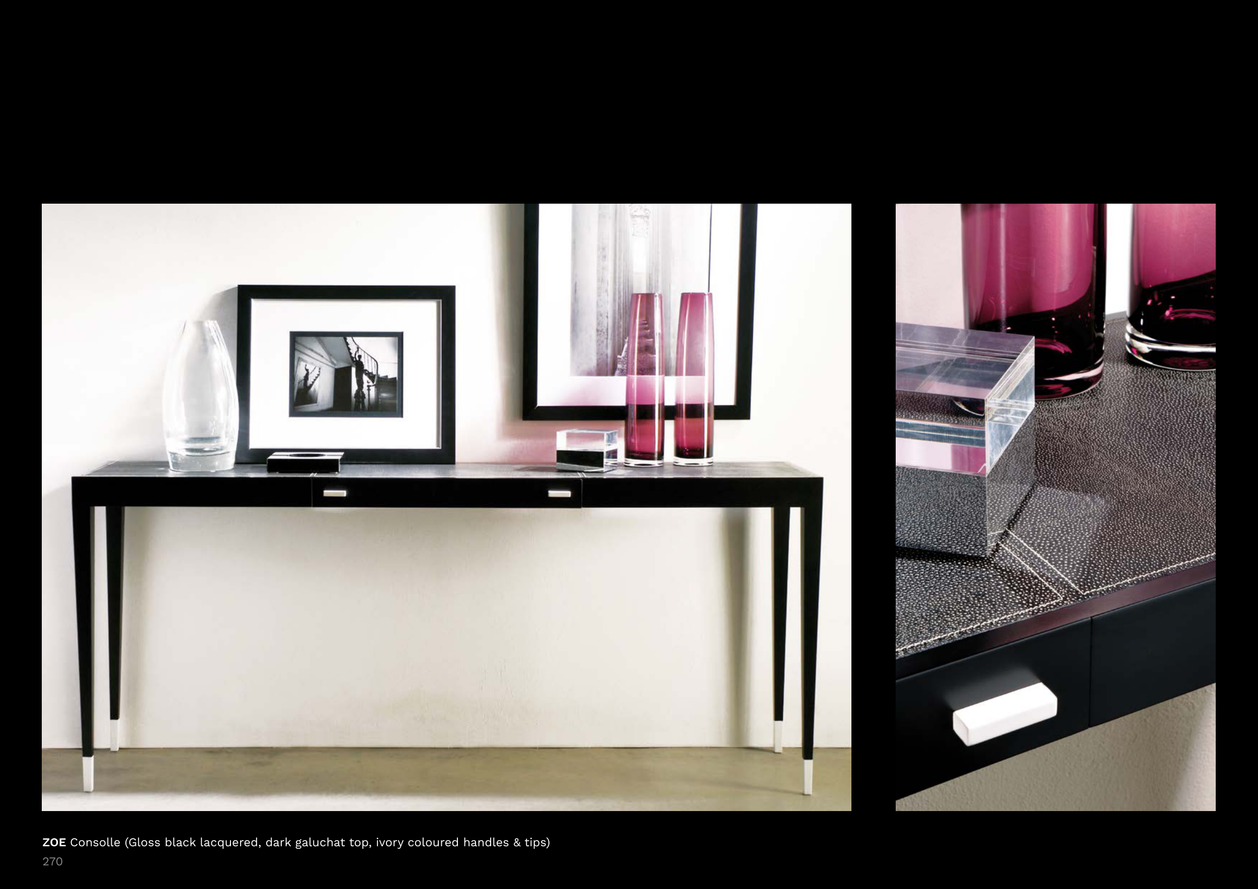 ZOE Consolle (Gloss black lacquered, dark galuchat top, ivory coloured handles & tips)