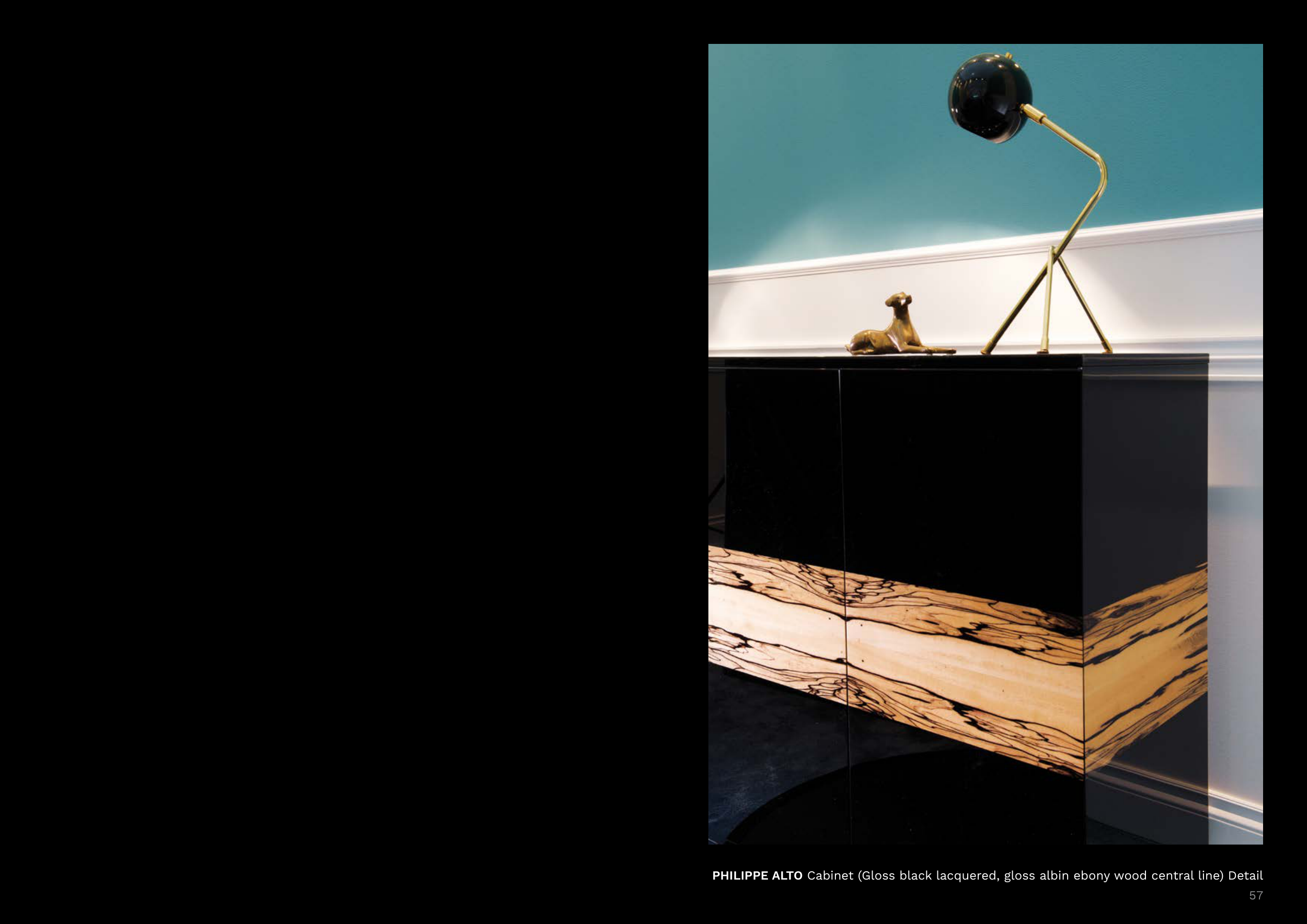 PHILIPPE ALTO Cabinet (Gloss black lacquered, gloss albin ebony wood central line) Detail