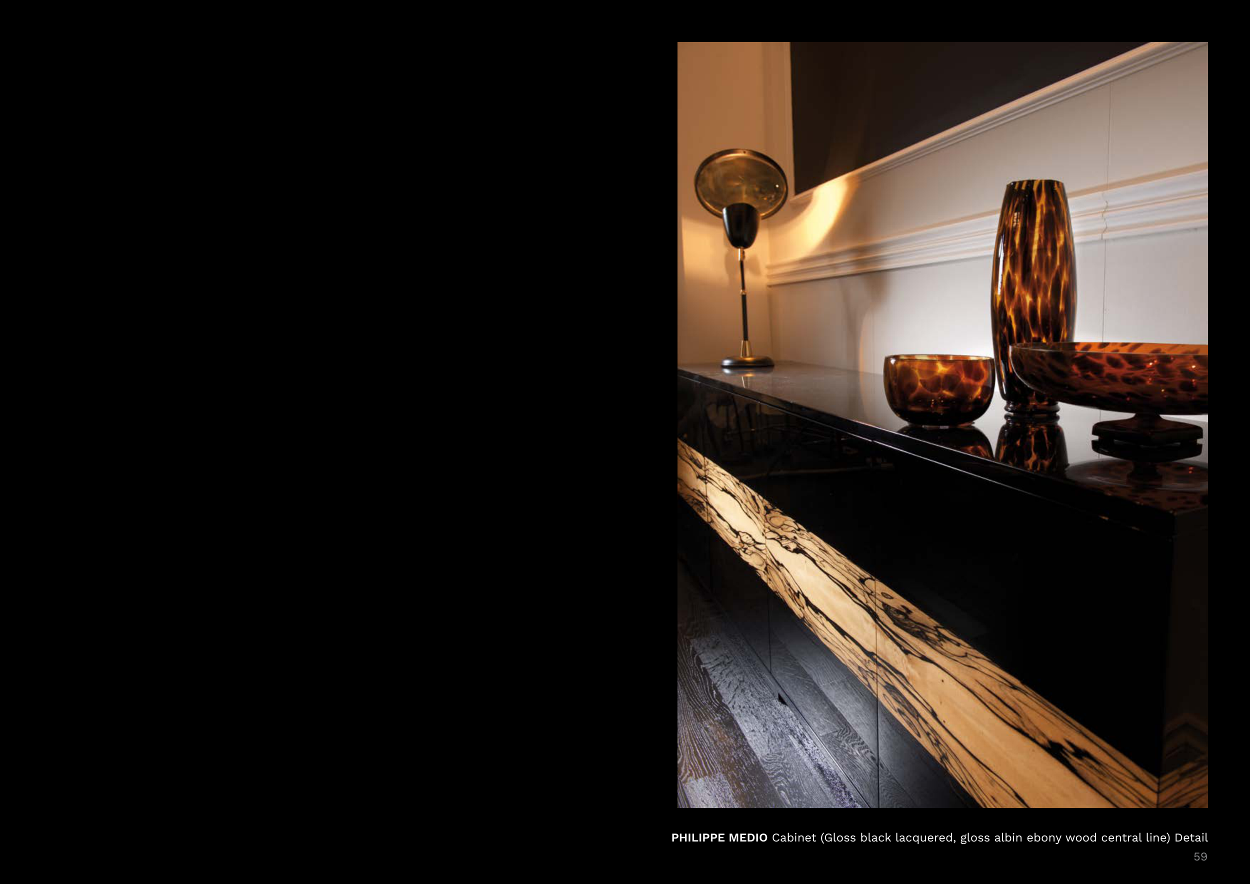 PHILIPPE MEDIO Cabinet (Gloss black lacquered, gloss albin ebony wood central line) Detail