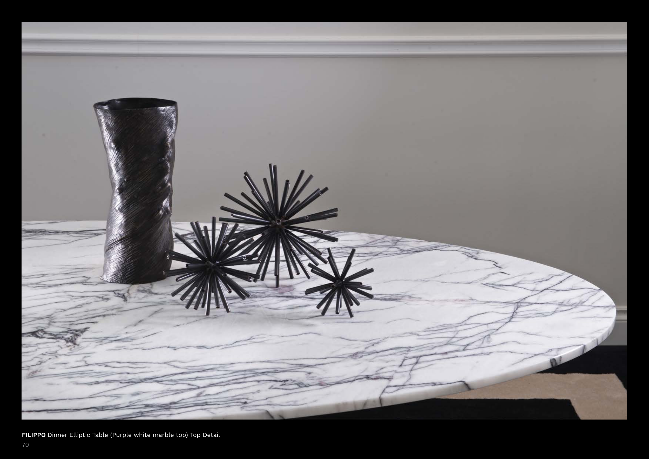 FILIPPO Dinner Elliptic Table (Purple white marble top) Top Detail