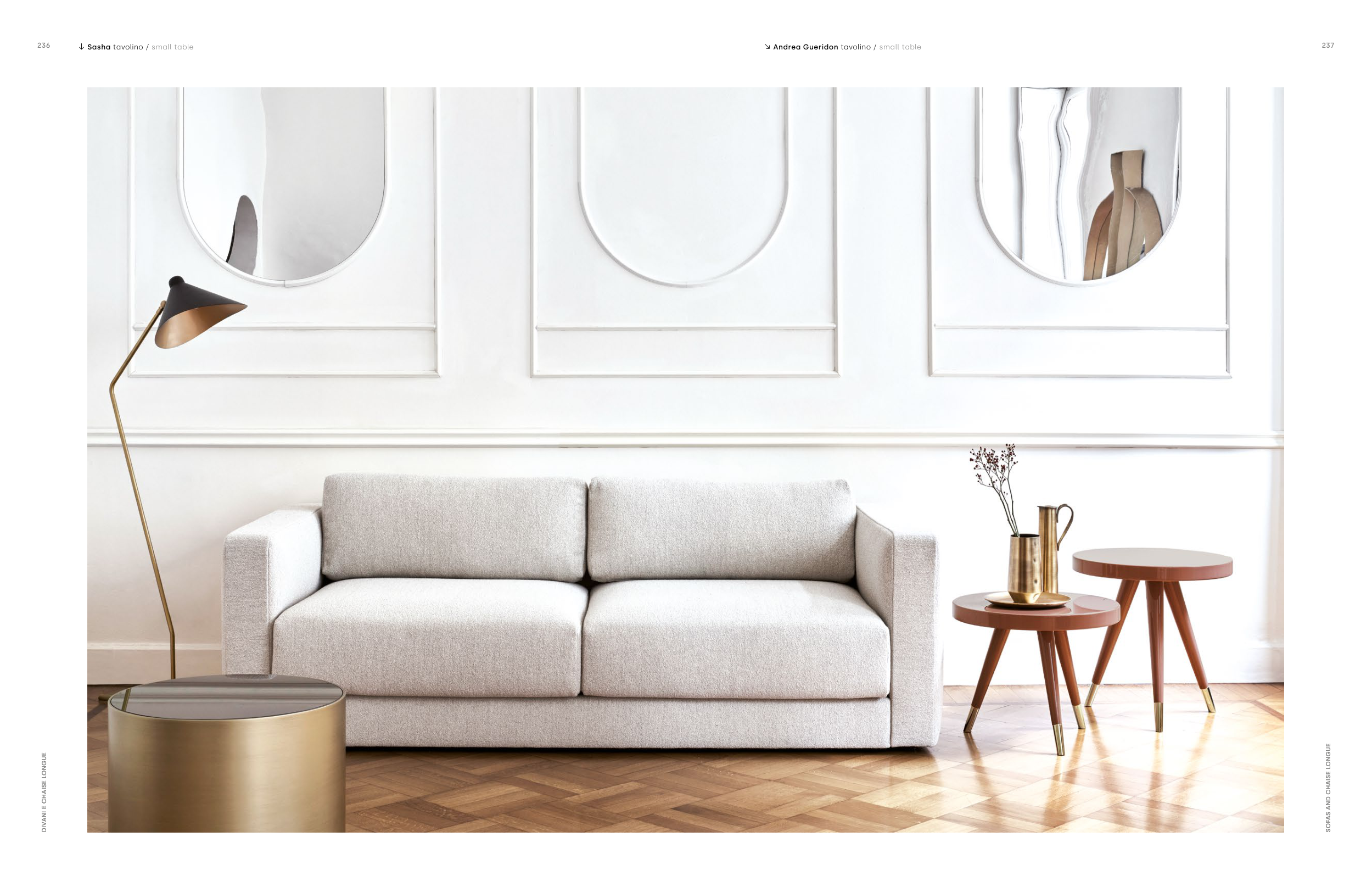 236 237 DIVANI E CHAISE LONGUE SOFAS AND CHAISE LONGUE Daniel Sasha tavolino / small table DIVANI E CHAISE LONGUE Andrea Gueridon tavolino / small table SOFAS AND CHAISE LONGUE