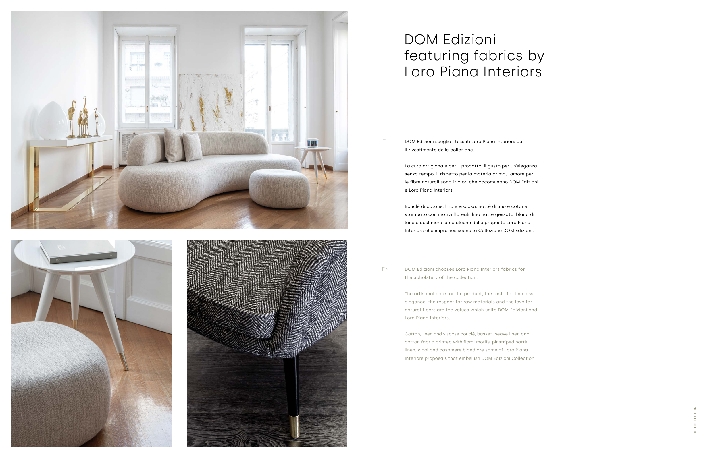 DOM Edizioni chooses Loro Piana Interiors fabrics for
