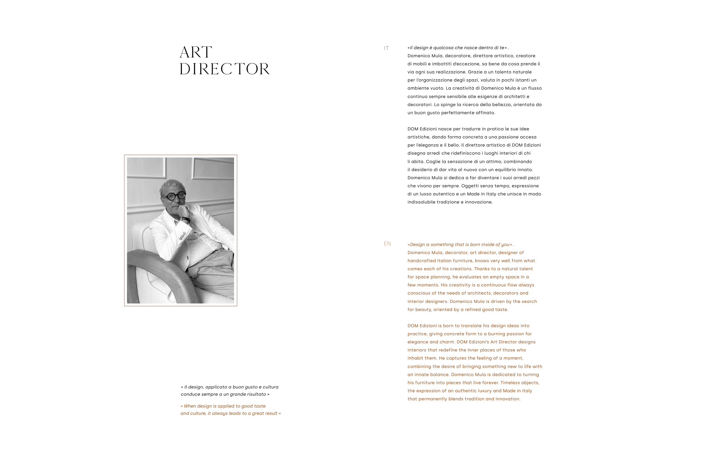 elegance and charm. DOM Edizioni’s Art Director designs