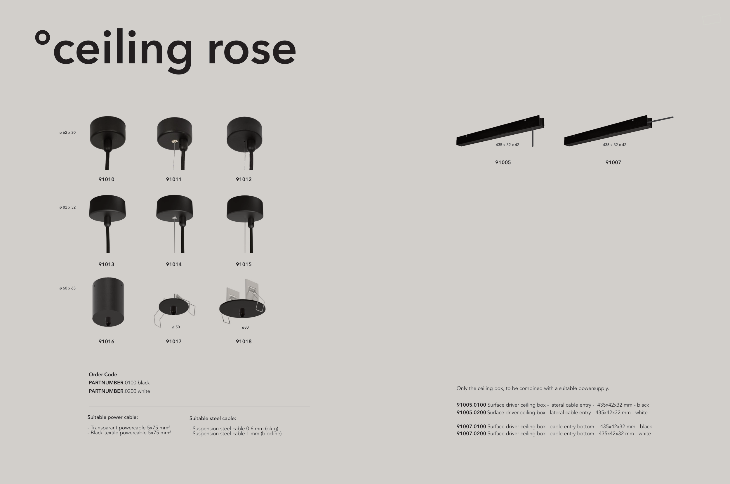 91007.0100 Surface driver ceiling box - cable entry bottom - 435x42x32 mm - black