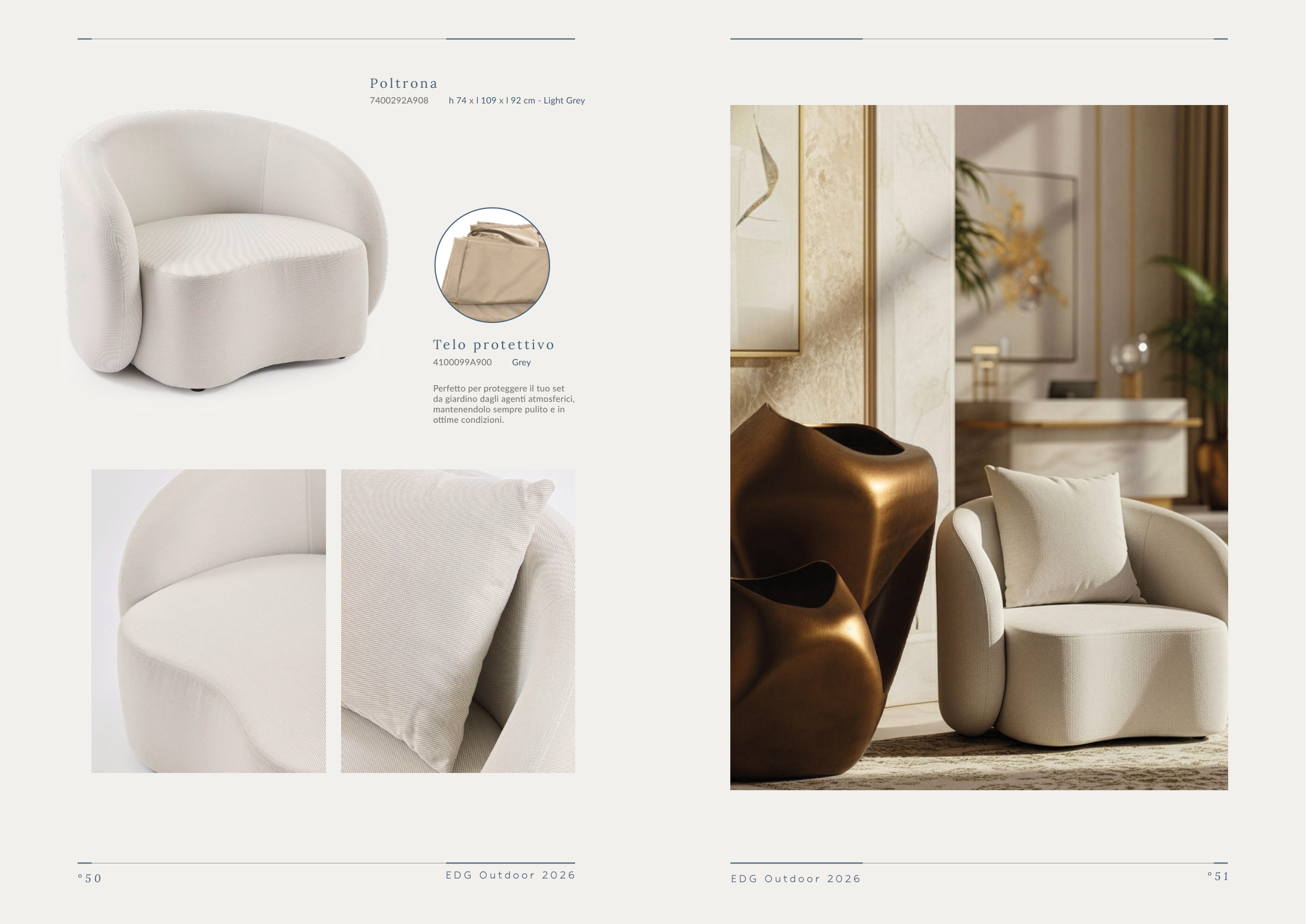 h 74 x l 109 x l 92 cm - Light Grey