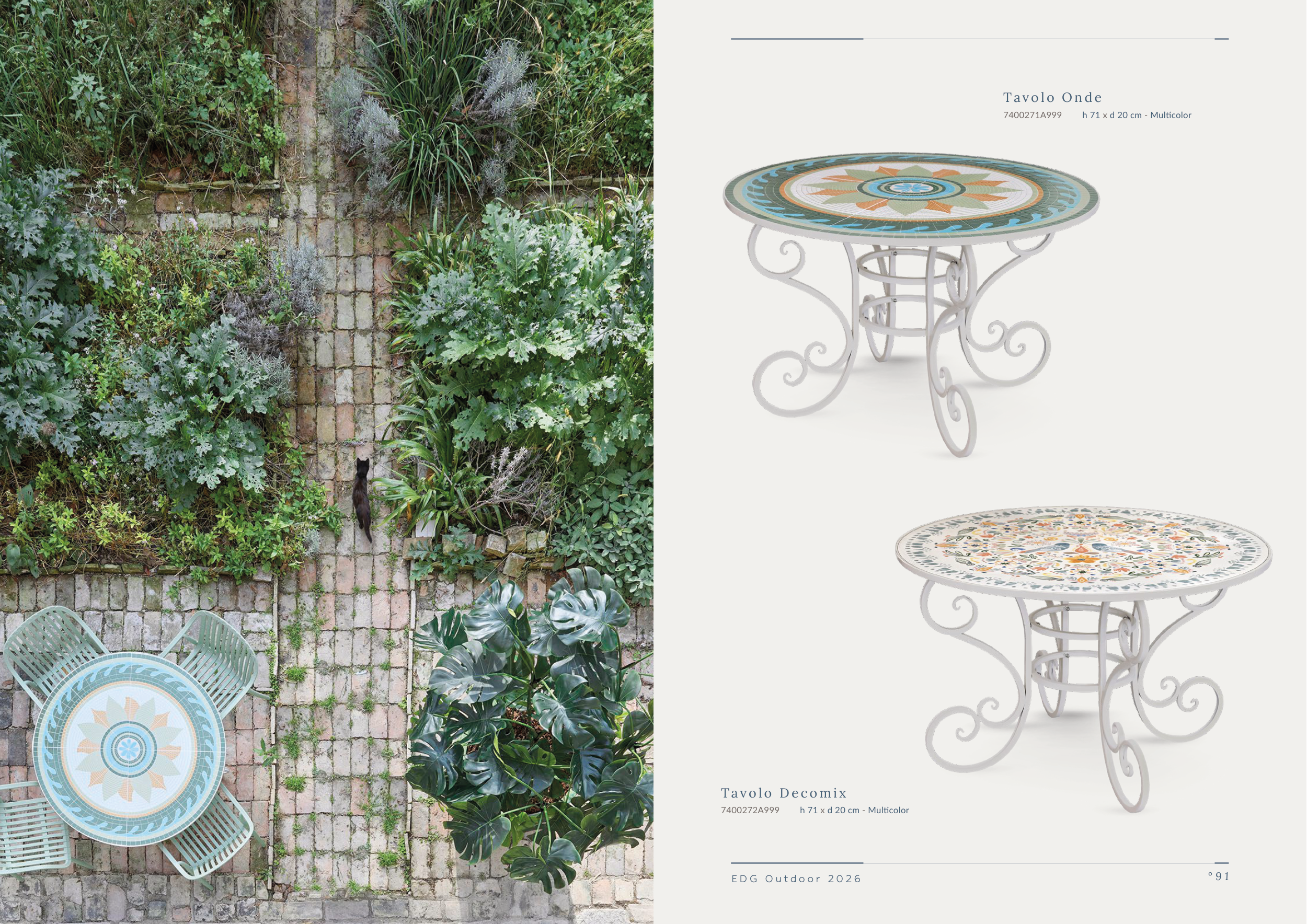 EDG Outdoor 2026 EDG O utdoor 2026 ° 9 0 ° 9 1 Tav o l o O n d e 7400271A999 h 71 x d 20 cm - Multicolor Tav o l o D e c o m i x 7400272A999 h 71 x d 20 cm - Multicolor
