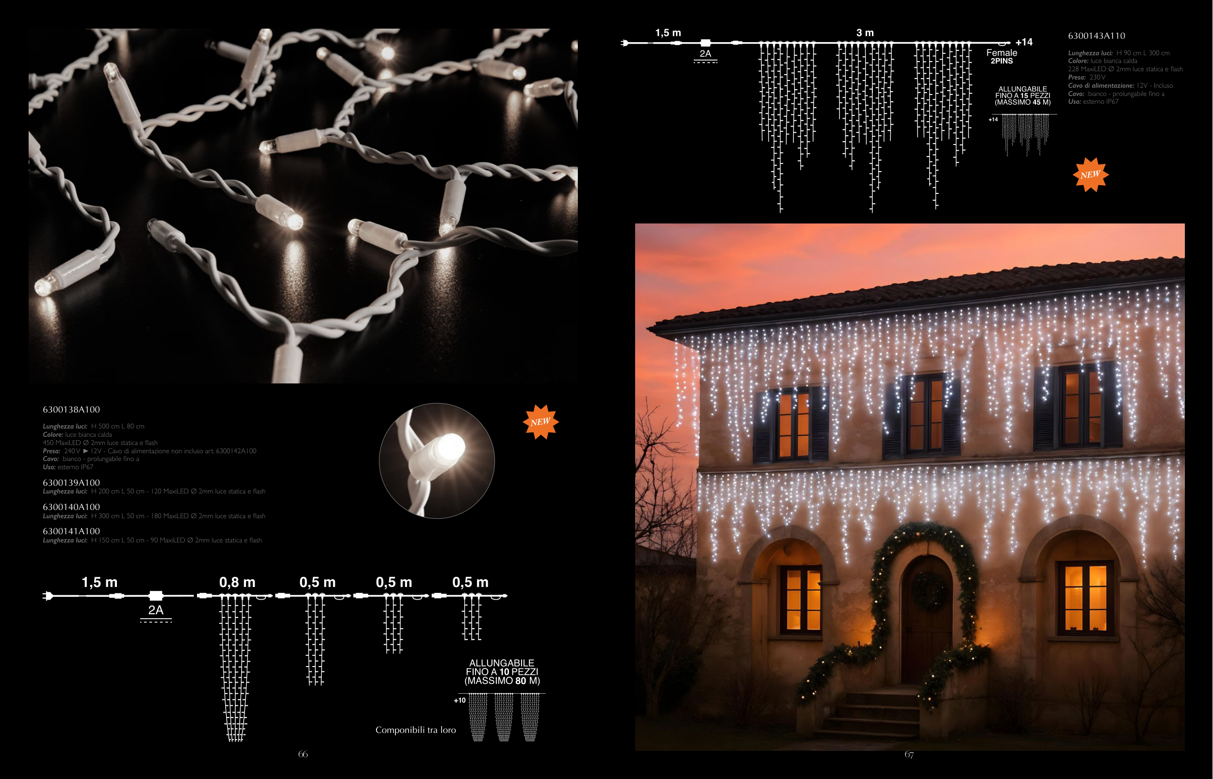 Lunghezza luci: H 300 cm L 50 cm - 180 MaxiLED Ø 2mm luce statica e flash