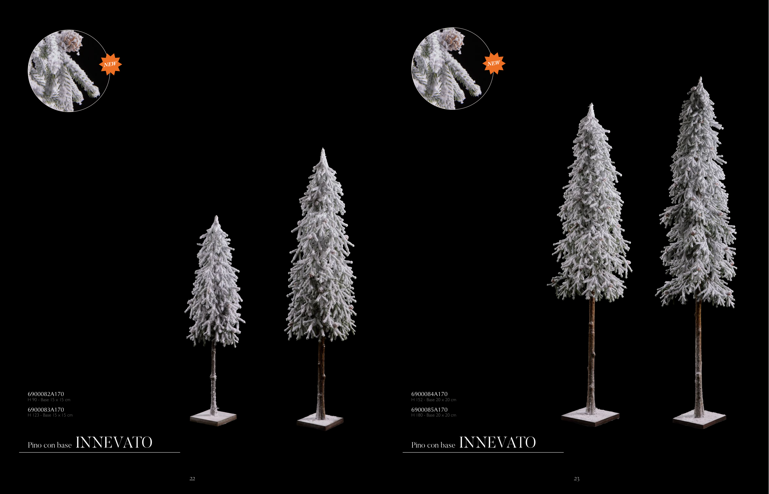 Pino con base INNEVATO Pino con base INNEVATO 6900082A170 H 90 - Base 15 x 15 cm 6900083A170 H 123 - Base 15 x 15 cm 6900084A170 H 152 - Base 20 x 20 cm 6900085A170 H 180 - Base 20 x 20 cm NEW NEW 22 23