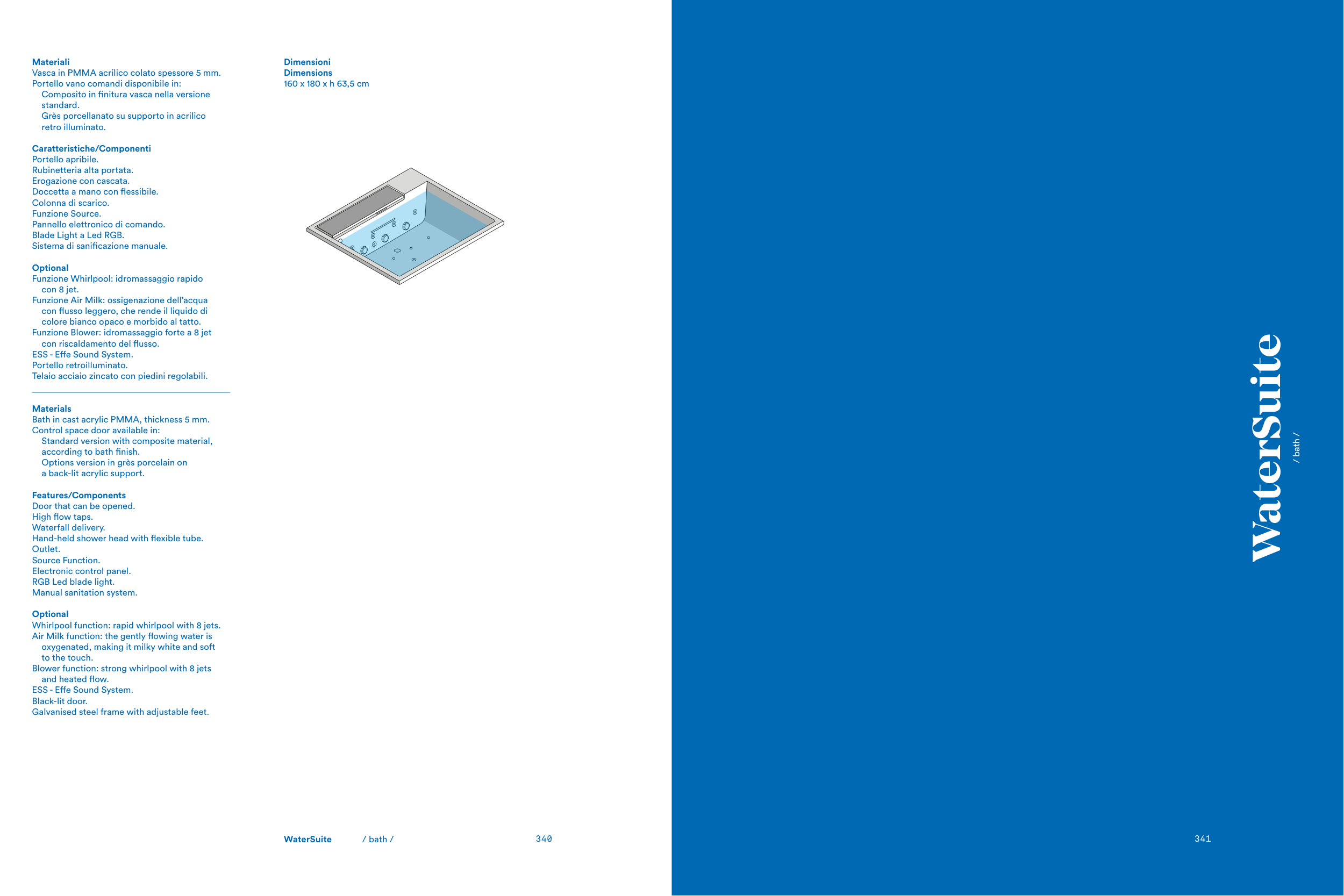 Bath in cast acrylic PMMA, thickness 5 mm.