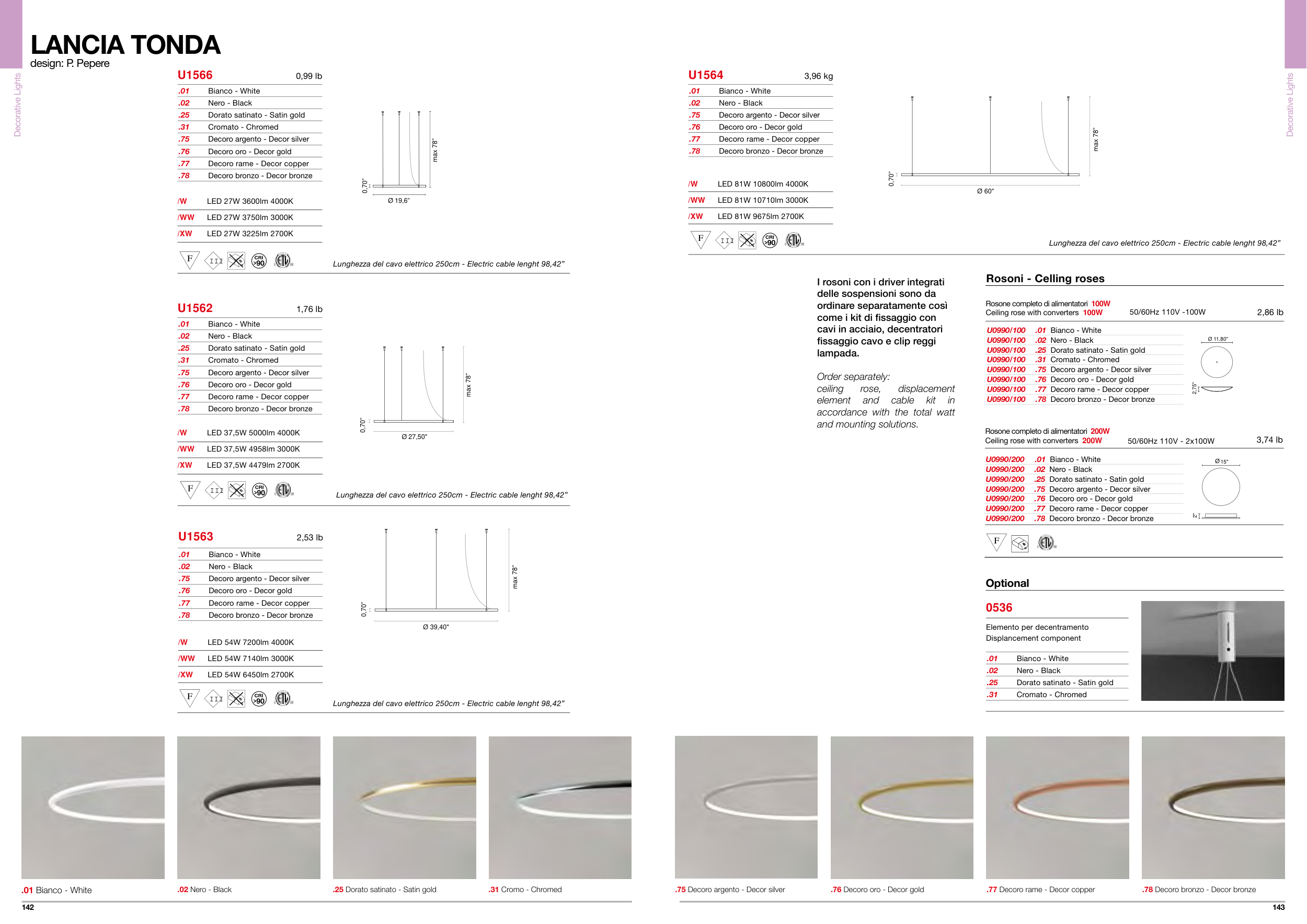 Lunghezza del cavo elettrico 250cm - Electric cable lenght 98,42”