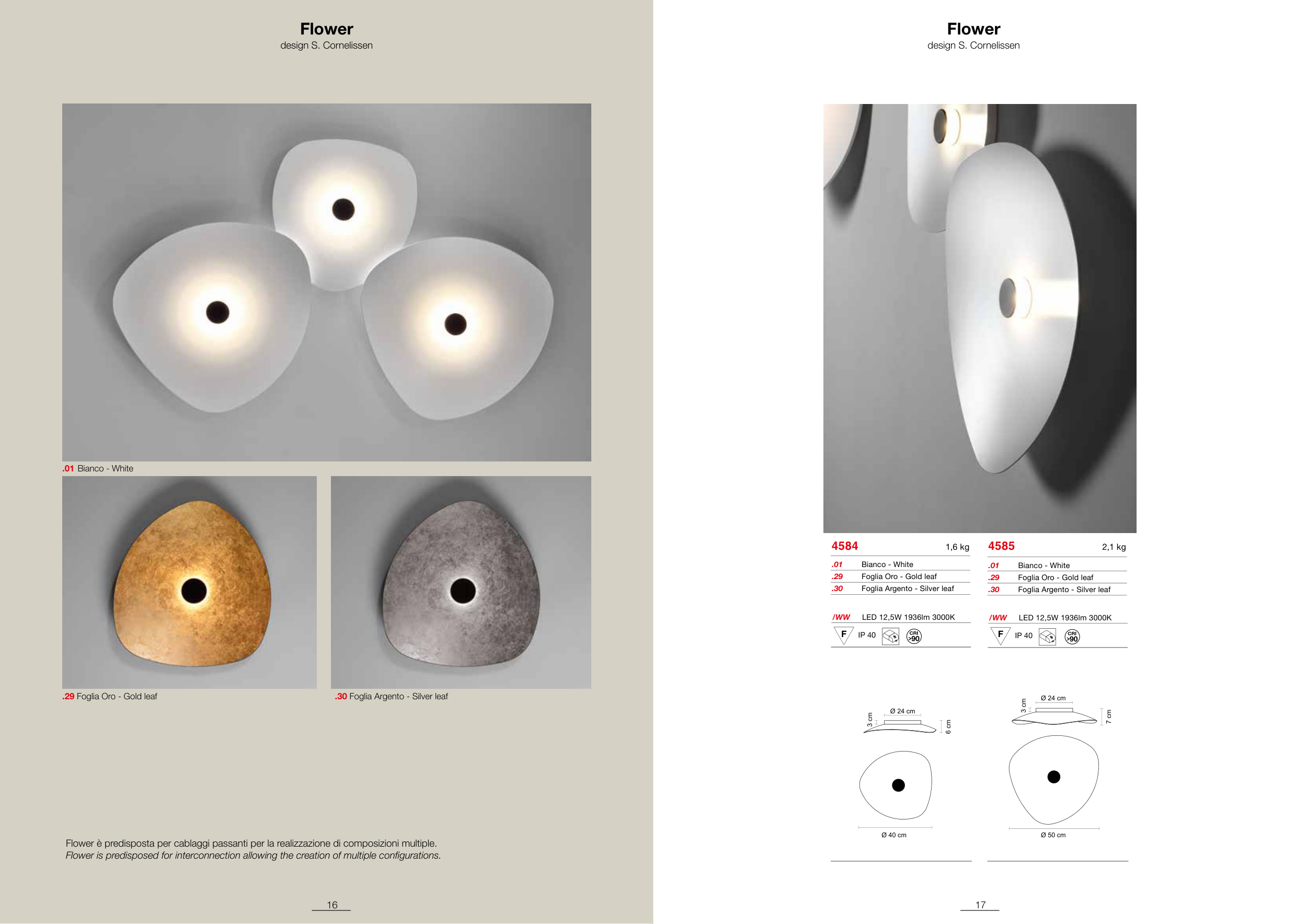 Flower è predisposta per cablaggi passanti per la realizzazione di composizioni multiple.