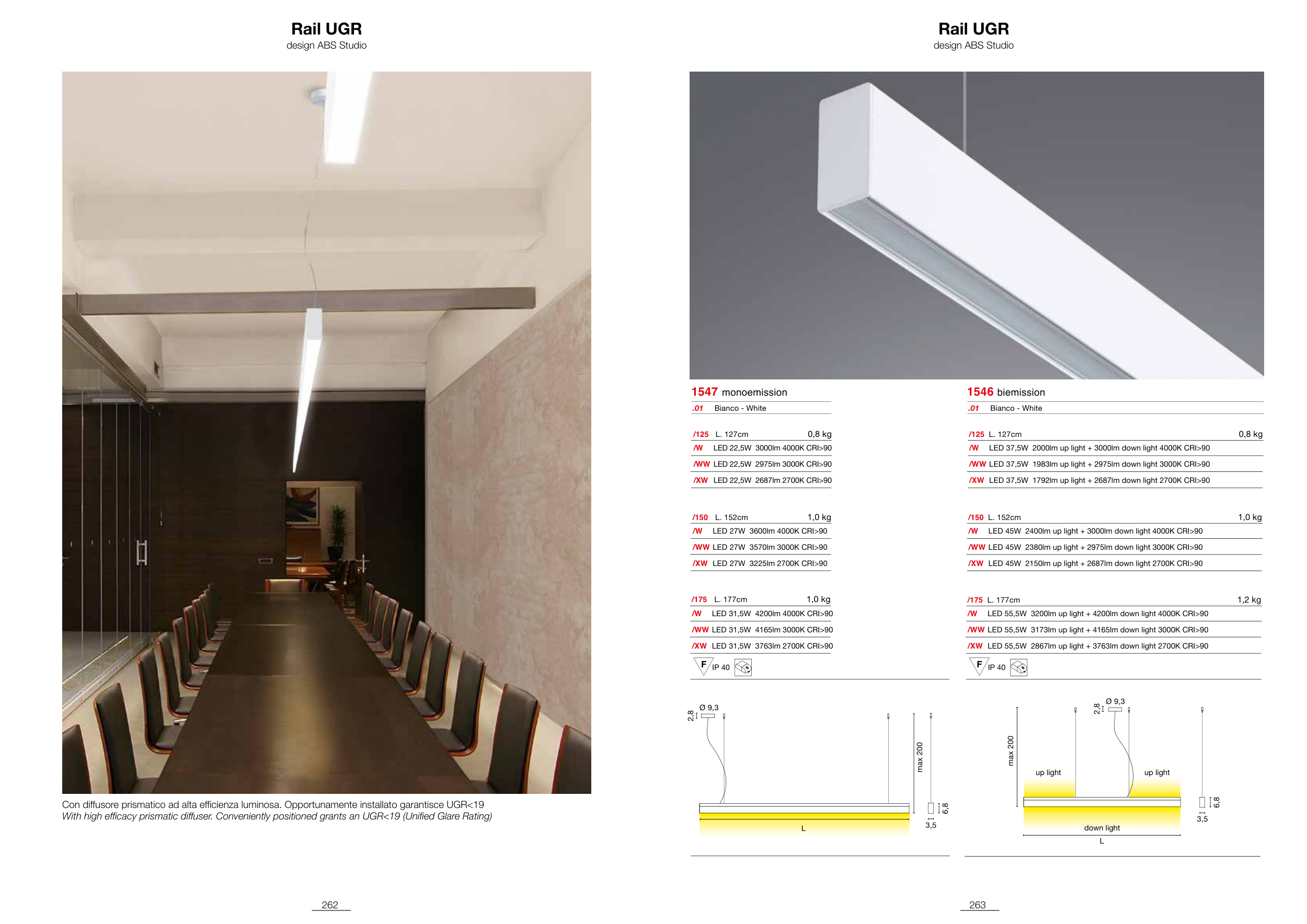 With high efficacy prismatic diffuser. Conveniently positioned grants an UGR<19 (Unified Glare Rating)