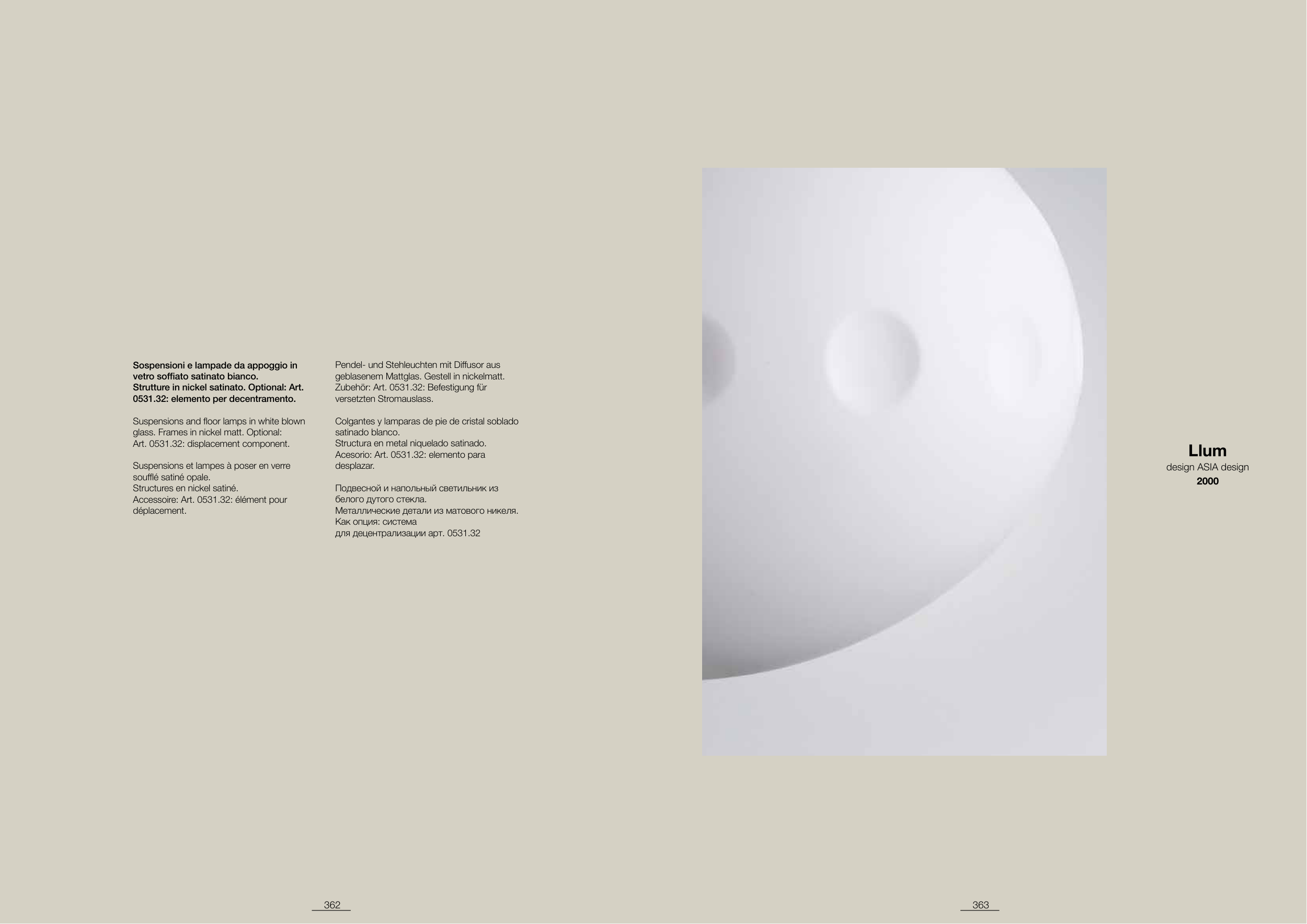 Suspensions and floor lamps in white blown