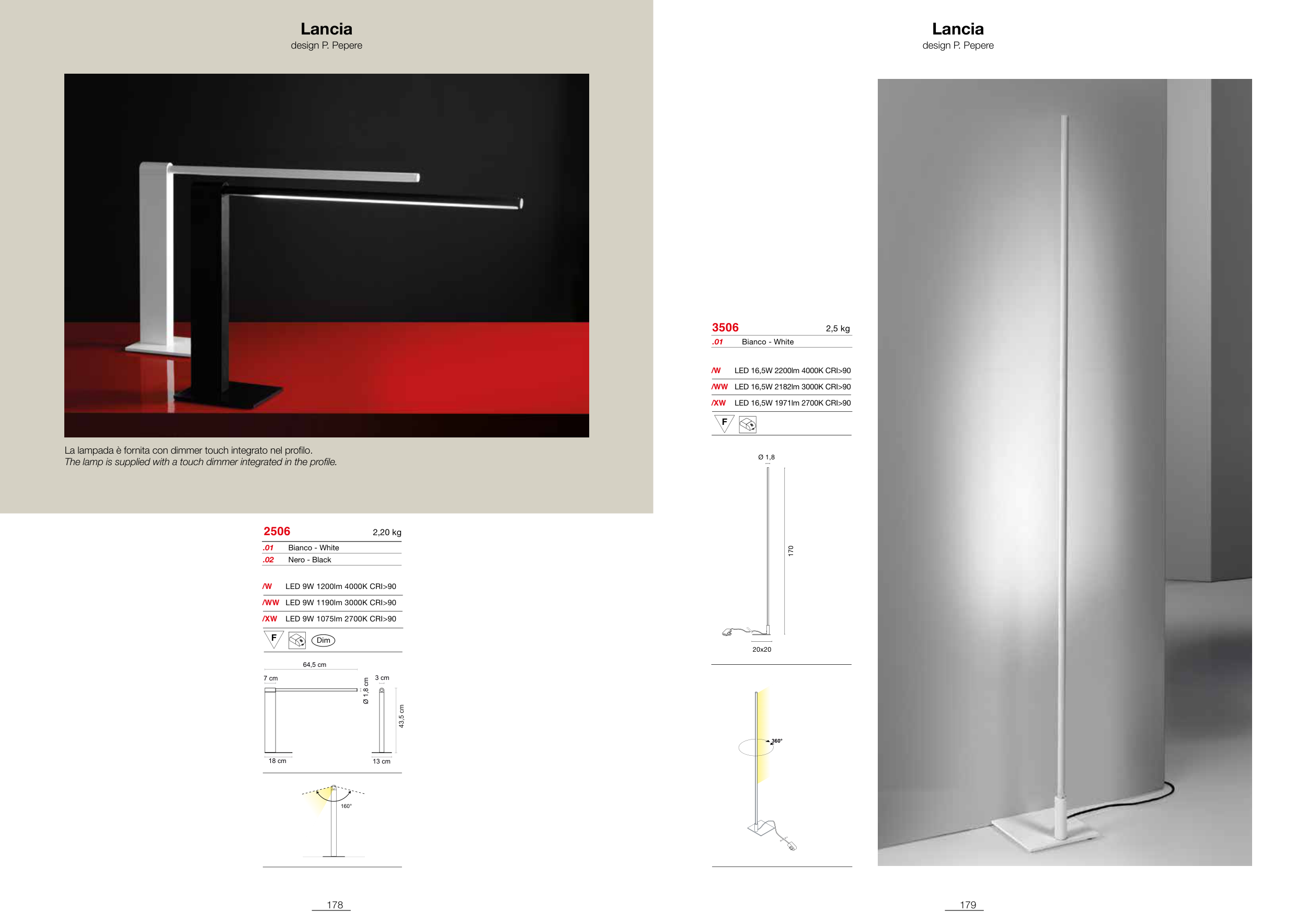 The lamp is supplied with a touch dimmer integrated in the profile.