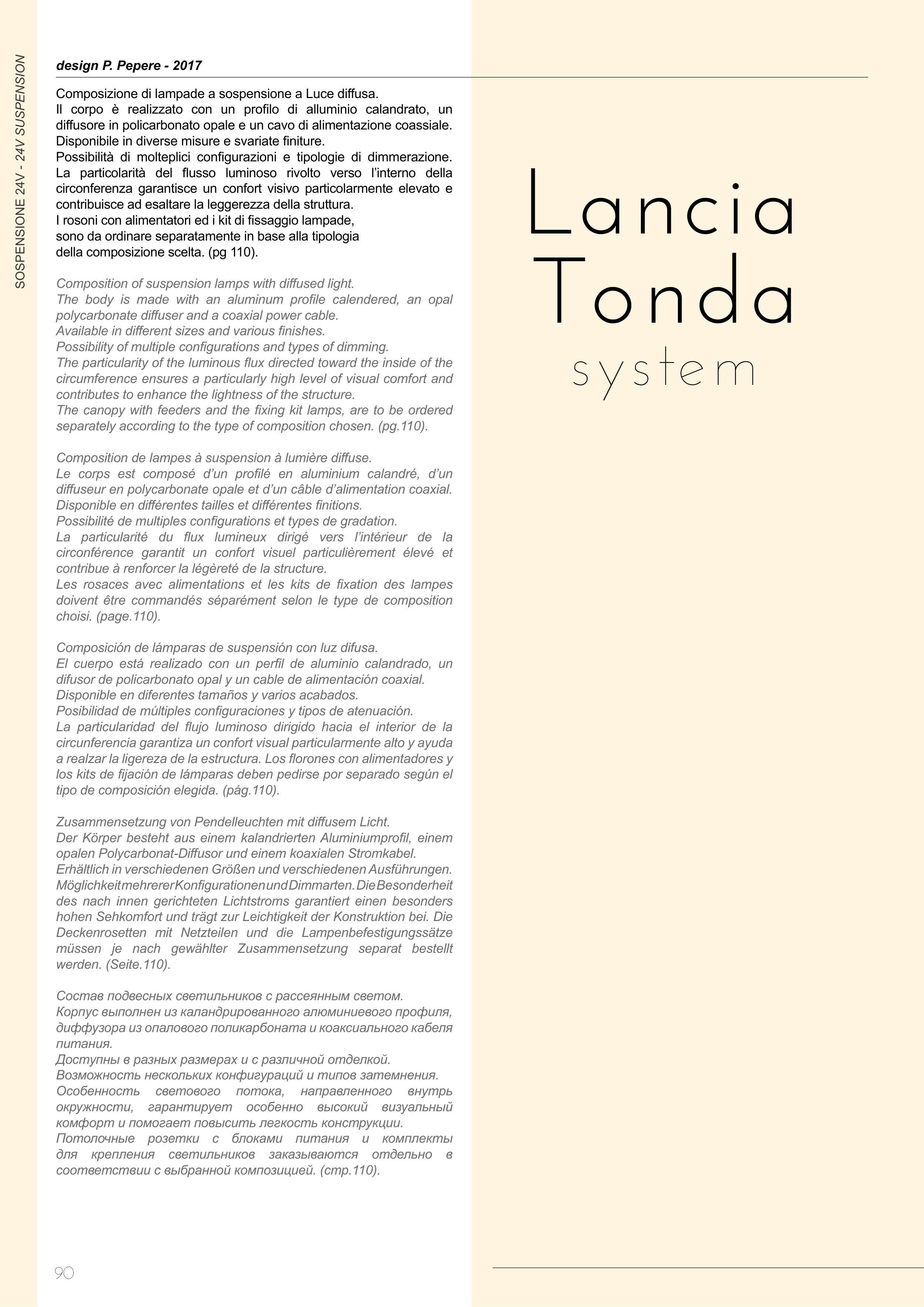 The canopy with feeders and the fixing kit lamps, are to be ordered