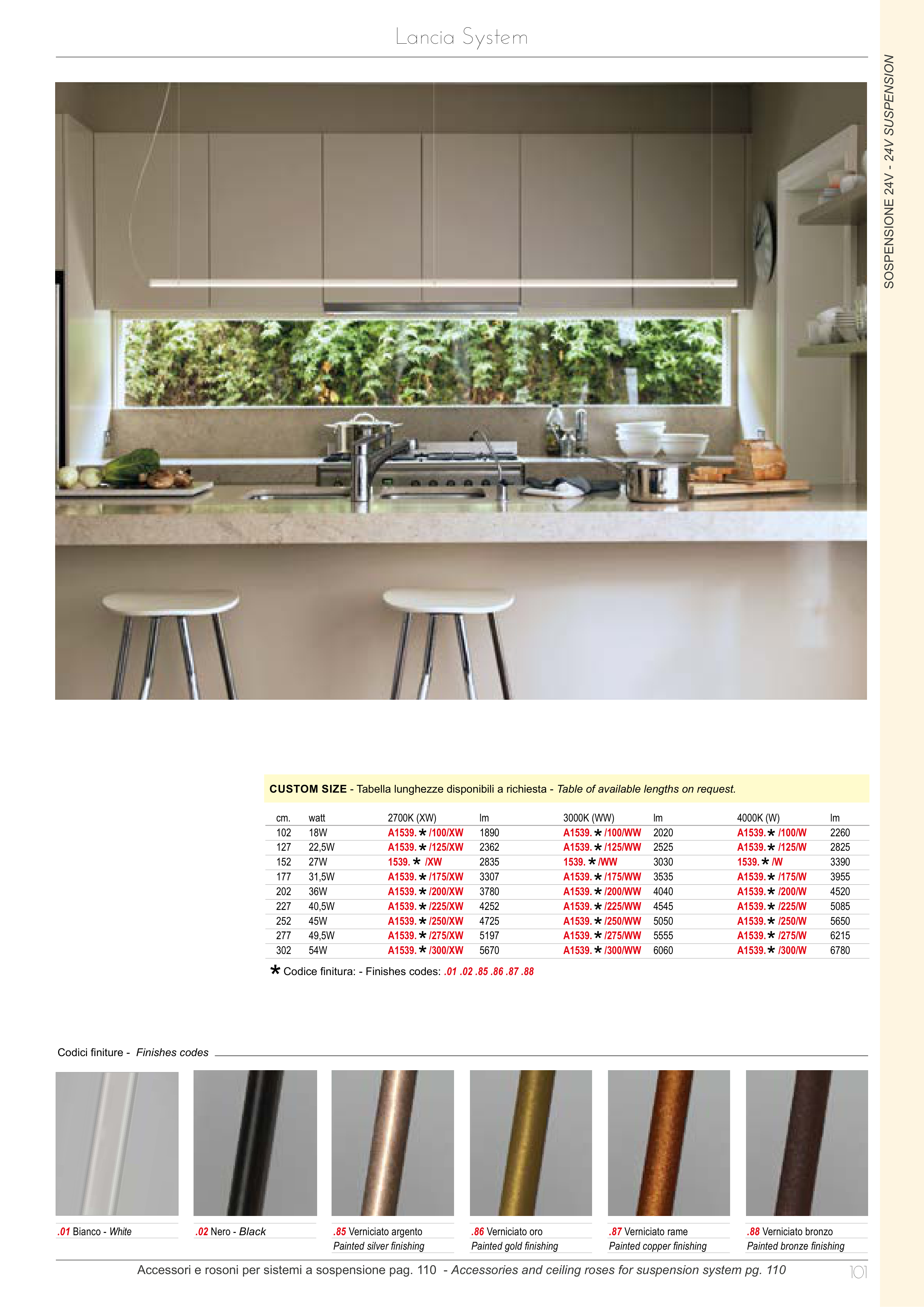 Codice finitura: - Finishes codes: .01 .02 .85 .86 .87 .88