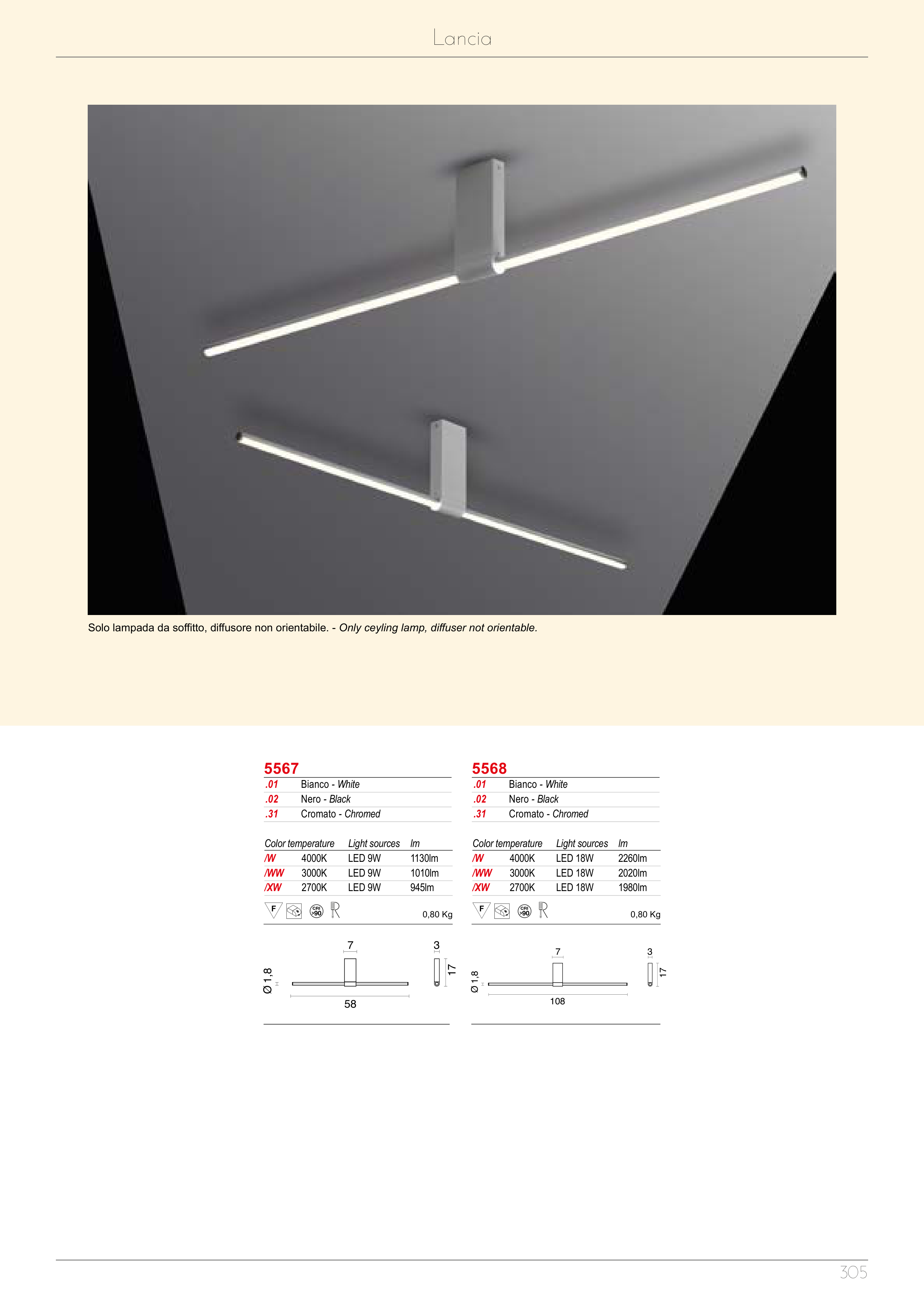 Solo lampada da soffitto, diffusore non orientabile. - Only ceyling lamp, diffuser not orientable.