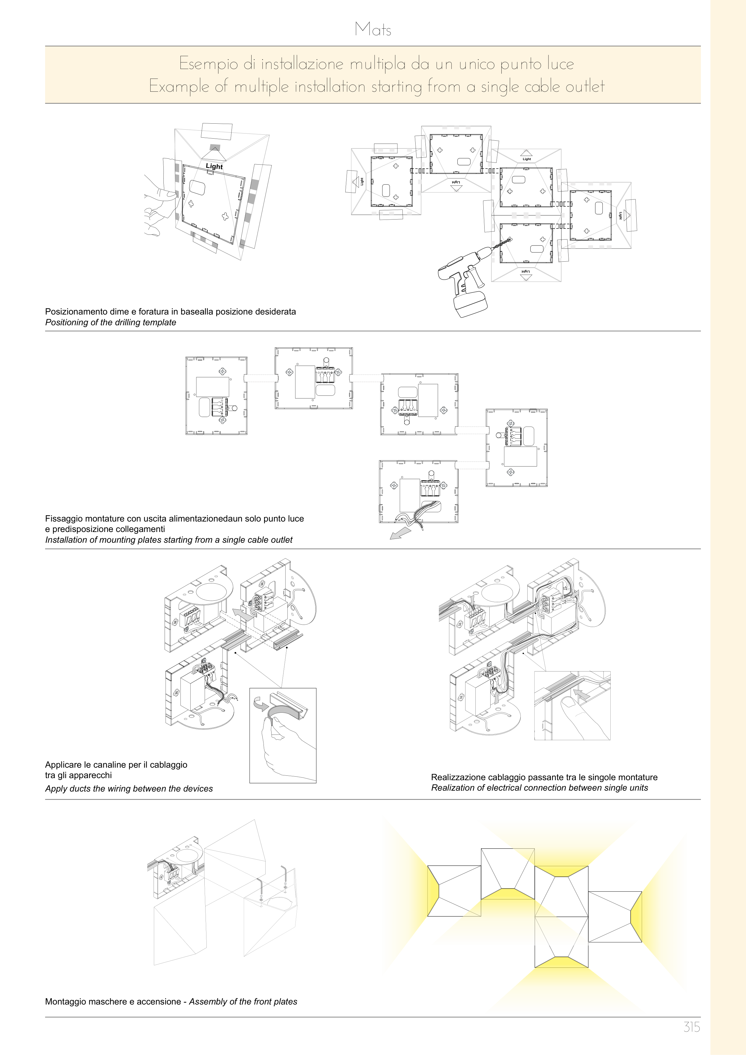 Fissaggio montature con uscita alimentazionedaun solo punto luce