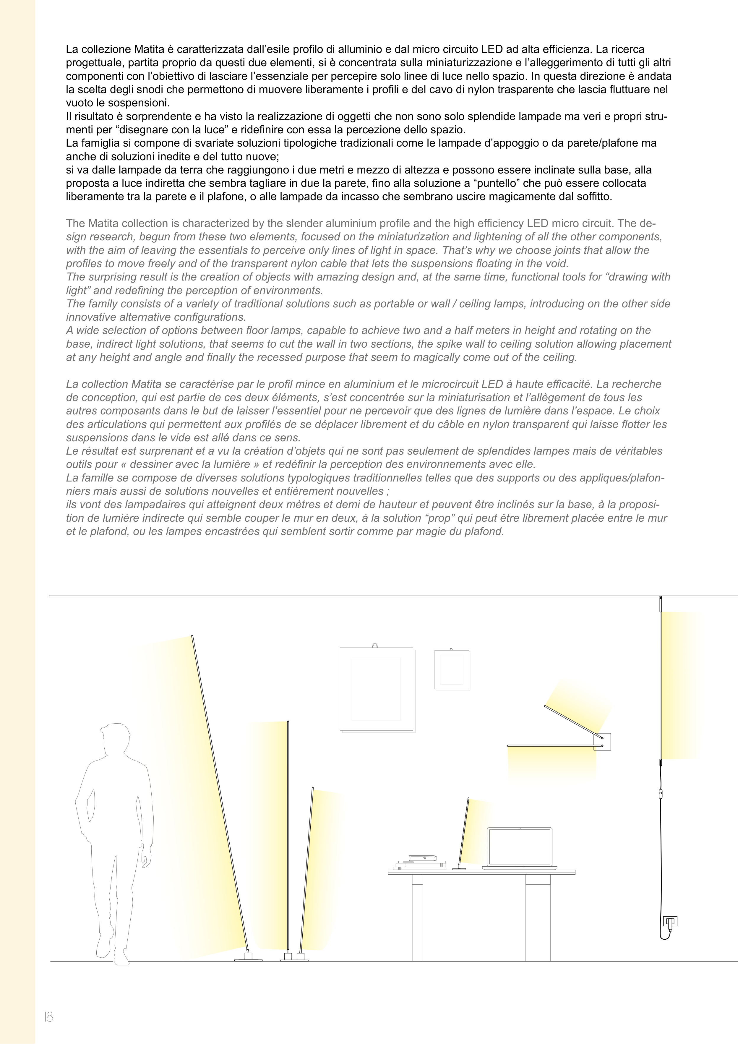 The Matita collection is characterized by the slender aluminium profile and the high efficiency LED micro circuit. The de-