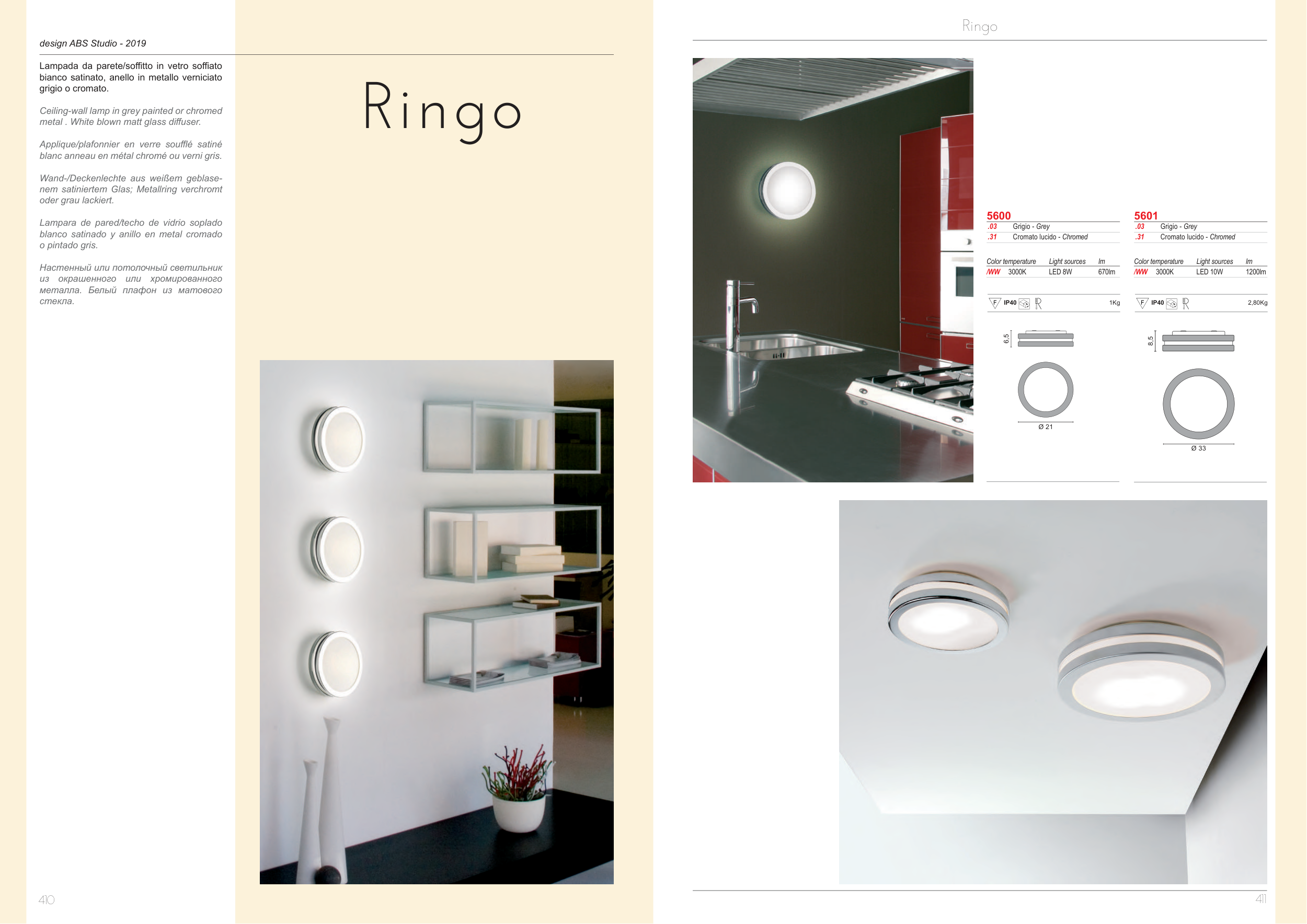 Ceiling-wall lamp in grey painted or chromed