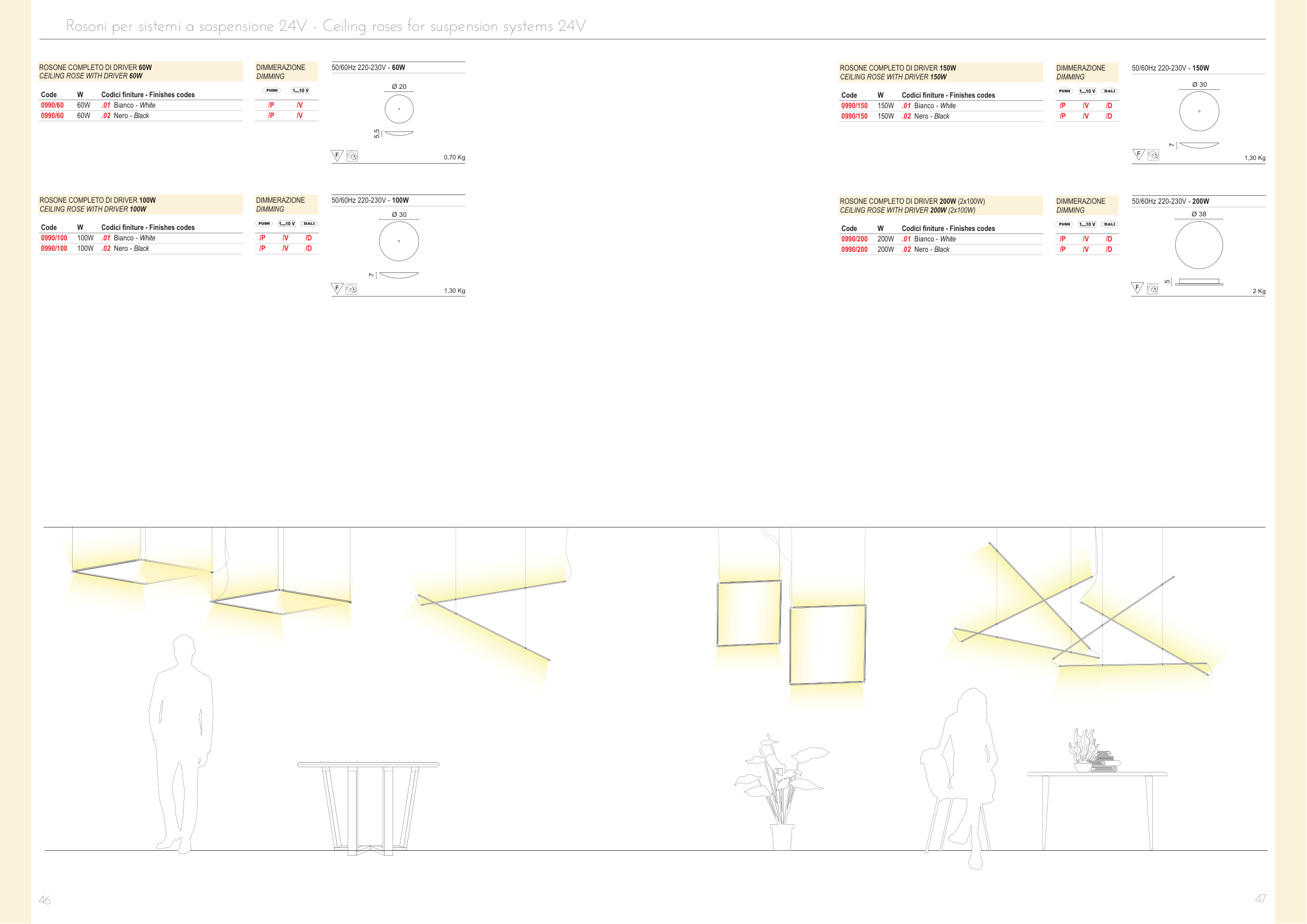 Rosoni per sistemi a sospensione 24V - Ceiling roses for suspension systems 24V