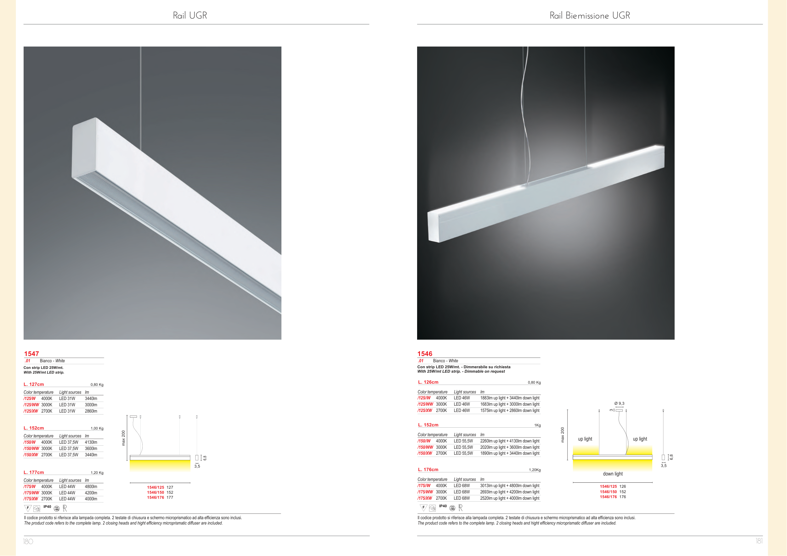 1575lm up light + 2860lm down light